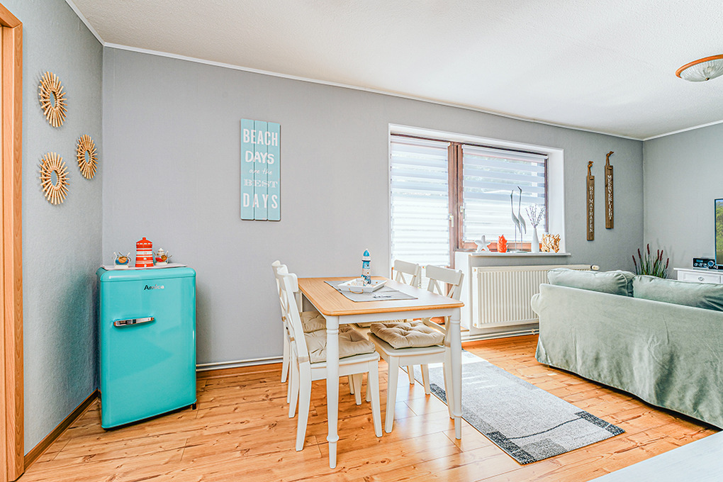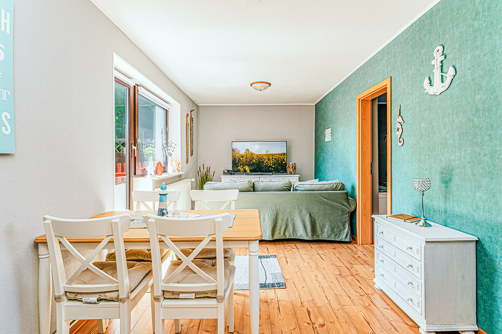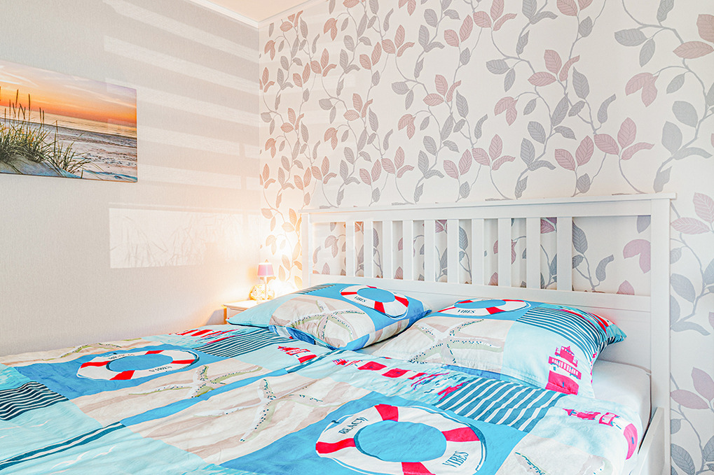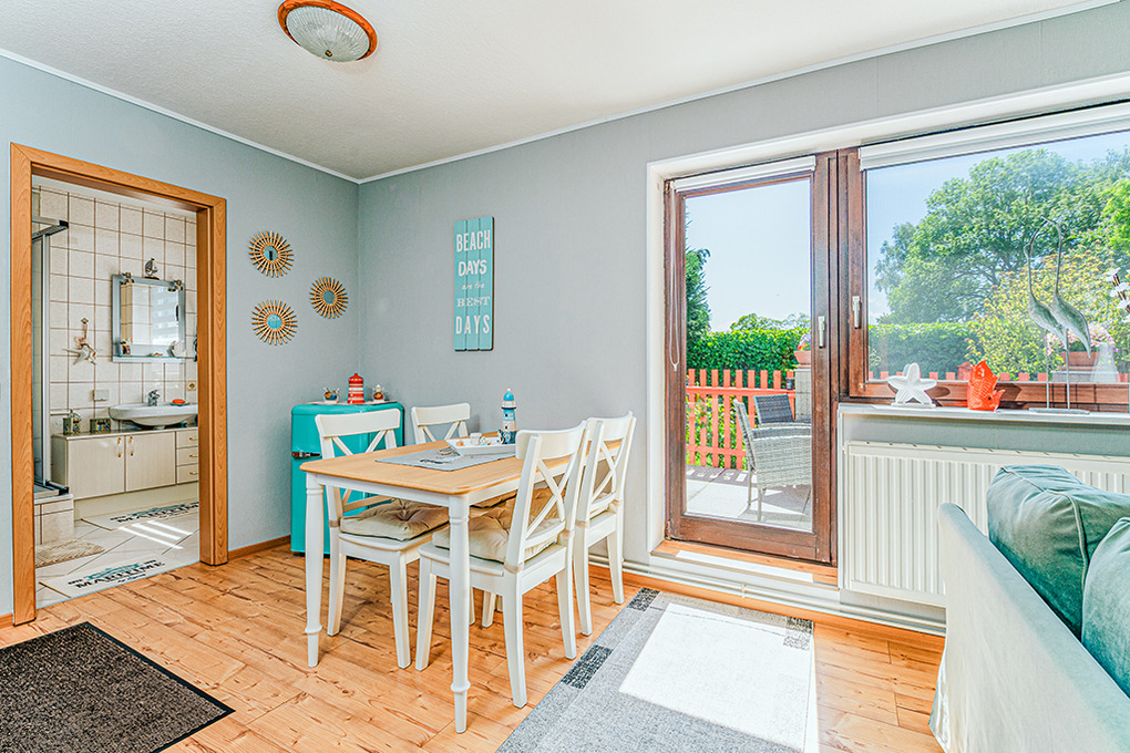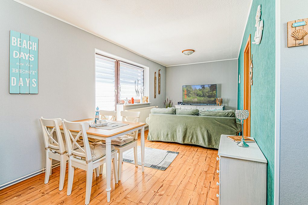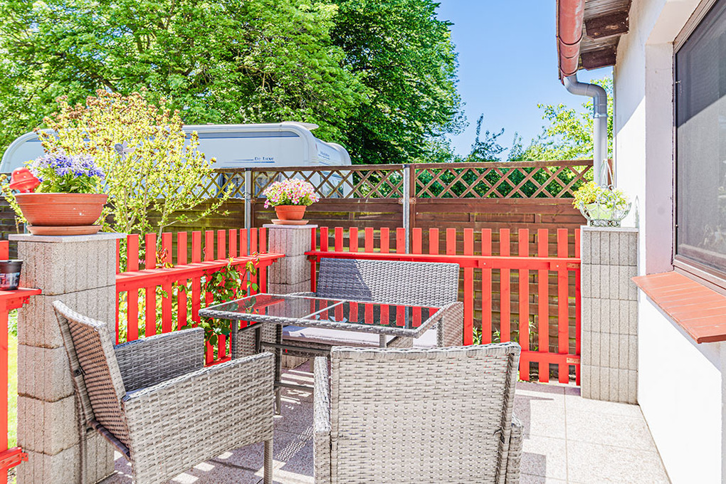 Haus: Gepflegter Bungalow mit gemütlicher Einrichtung im maritimen Stil. Nichtraucher-Objekt. Zentralheizung. Schöne Sonnenterrasse mit Sitzmöbeln, anschließender Rasenfläche, Grillmöglichkeit. 1 Pkw-Stellplatz am Haus.