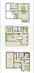 2. Etage mit Schrägen: 3-Bettzimmer mit Einzelbetten, Sat-TV, Switchkonsole. 2-Bettzimmer. Separates Bad: Badewanne, Wb, WC.