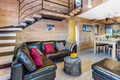 1. Etage: Großer Wohn-/Essraum mit gemütlichem Ecksofa, Kaminofen (Holz wird gestellt), Sat-TV, großem Esstisch für 11 Personen, moderner, gut ausgestatteter Küchezeile (Backofen, Mikrowelle, Tiefkühlschrank (60 l), Geschirrspüler, Kaffeemaschine, Nespresso-Kaffeemaschine, Raclette-, Fonduegeräte). Doppelzimmer mit Sat-TV. 2-Bettzimmer mit Etagenbett (90x190 cm). Bad: Dusche, Wb. Separates WC. Balkon mit Sitzmöbeln, herrlichem Blick ins Skigebiet.