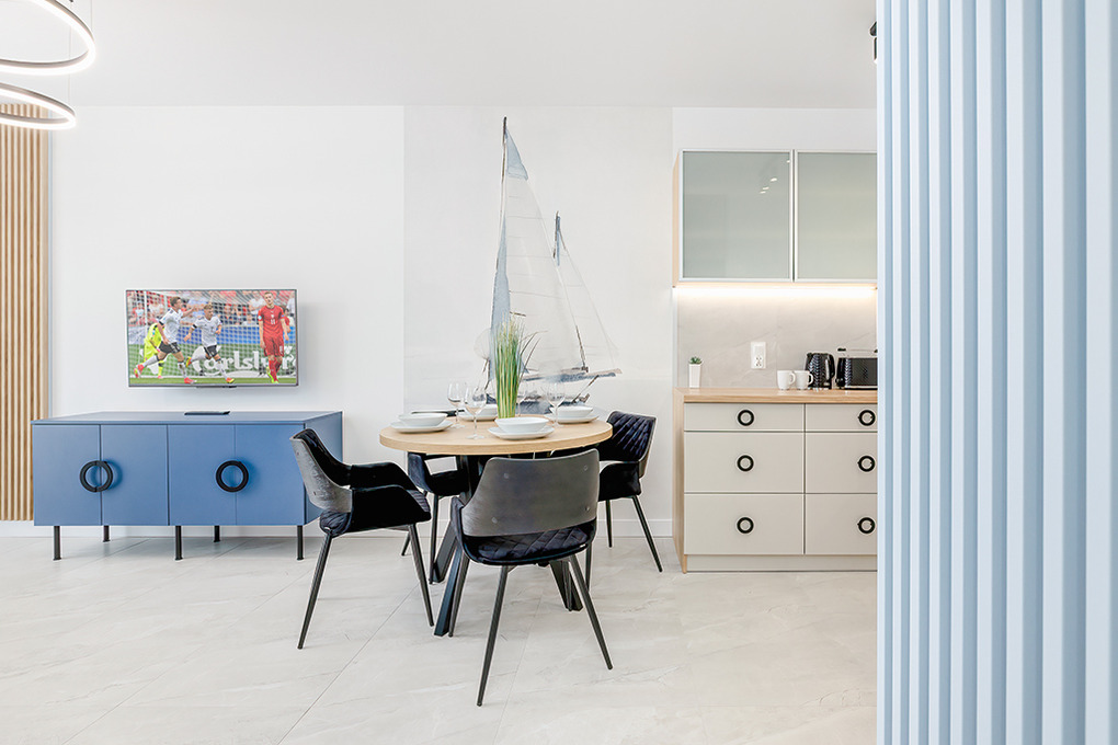 Ort: Miedzywodzie (Heidebrink). Sehr gute Lage, Ostseestrand nur 350 m. Hotel mit Restaurant, Schwimmbad, Sauna, Wellness-Bereich, Tennisplatz 650 m. Supermarkt 250 m. Restaurants, Cafes 500 m. Ortsmitte 550 m. Dziwnów mit Hafen, Bootsverleih, Supermarkt 5 km. Surfschule mit Materialverleih in Dziwnowek 9 km. Misdroy 20 km.