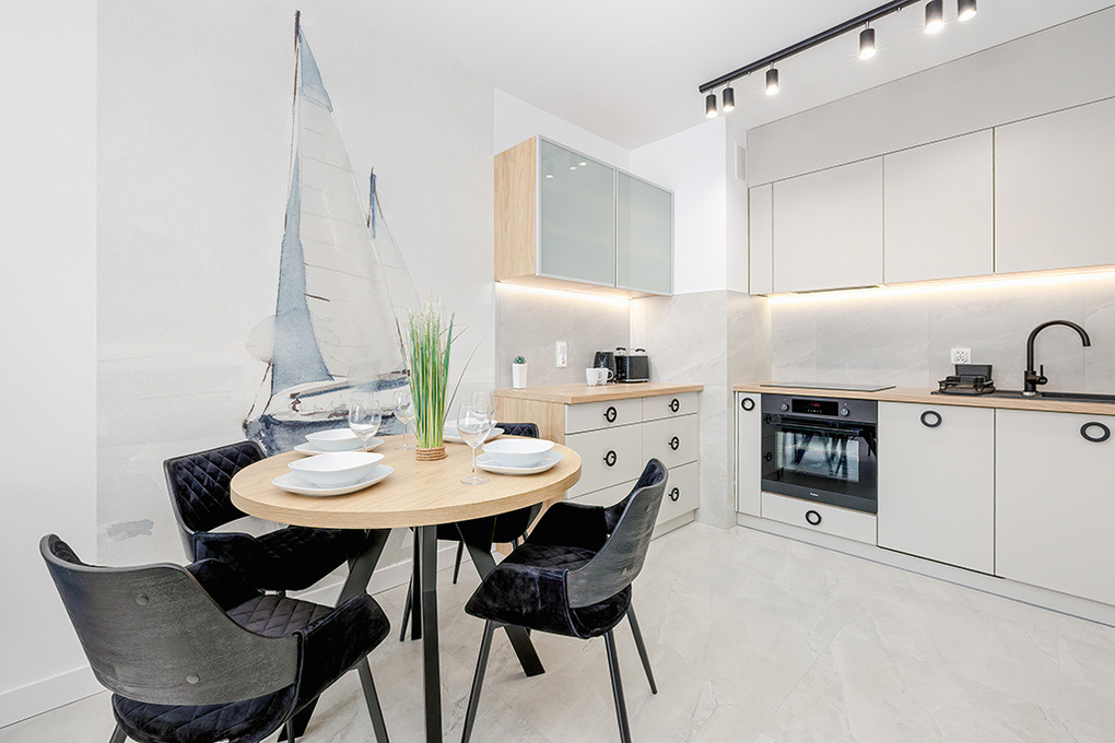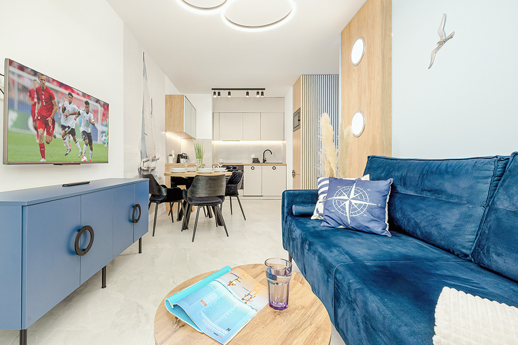 PL 13.17 Wohnung 2-4 Pers.: Ferienwohnung mit ca 42 qm Wohnfläche, 2. Etage. Aufzug im Haus. Heller Wohn-/Essraum mit Couchgarnitur (Schlafsofa 2 Pers.), Flachbild Sat-/SMART-TV mit dt Programmen, Internet (WLan), Esstisch, sehr gut ausgestatteter Küchenzeile (4 Pl-Induktionsherd, Dunstabzug, Mikrowelle, Backofen, Spülmaschine). Doppelzimmer. Bad: Du, Wb, WC, Waschmaschine. Überdachter Balkon mit Sitzmöbeln.
