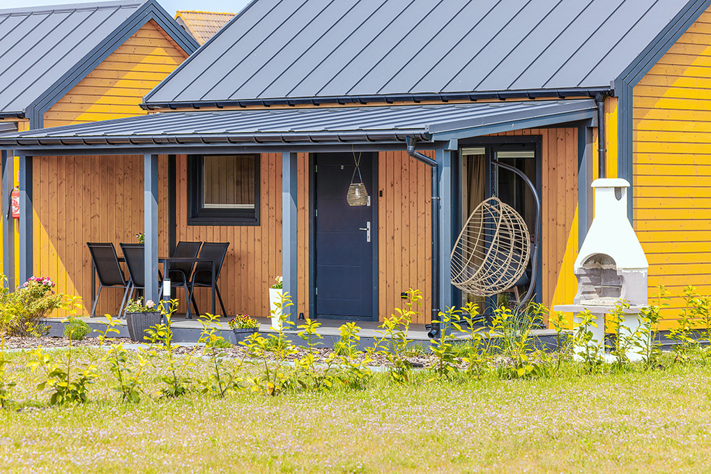 Haus: Gepflegte Ferienhaus-Anlage mit Pool und Rezeption, in 2025 neu erbaut. Holzferienhäuser mit moderner Einrichtung. Kostenloses Internet über WiFi. Heizung über Klima-Anlage und E-Radiator. Warmwasser über E- Boiler (60 l). Terrasse mit Sitzmöbeln, Grill. 1 Pkw-Stellplatz/Haus.