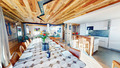 1. Etage: Großer Wohn-/Essraum mit gemütlichem Ecksofa, Kaminofen (Holz wird gestellt), Sat-TV, großem Esstisch, moderner, gut ausgestatteter Küchezeile (Backofen, Mikrowelle, Tiefkühlschrank 50 L, Geschirrspüler, Kaffeemaschine, Nespresso-Kaffeemaschine, Raclette-, Fonduegeräte). Doppelzimmer mit Sat-TV, Bad (Badewanne. Wb). 2 Doppelzimmer mit jeweils Sat-TV, Bad (Dusche, Wb). 2 Separate WC. Terrasse mit Sitzmöbeln, Liegen und herrlichem Blick ins Skigebiet.