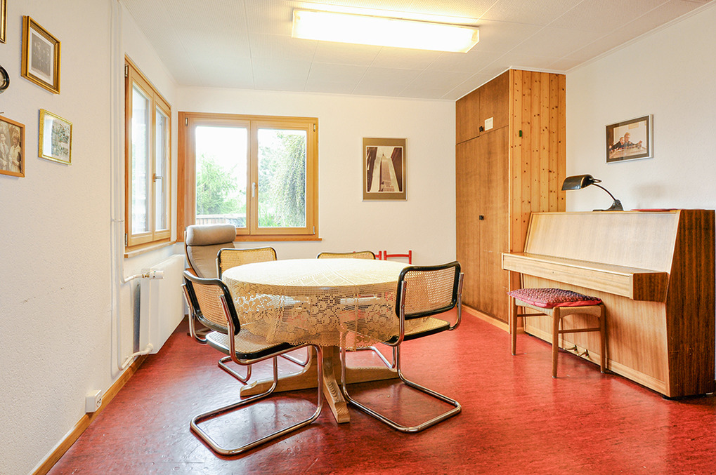 Im Haus (Gemeinschaftsnutzung): großer Aufenthalts- und Spieleraum mit Tischtennis-Platte, Klavier, Sofa. Waschraum mit Waschmaschine, Trockner.