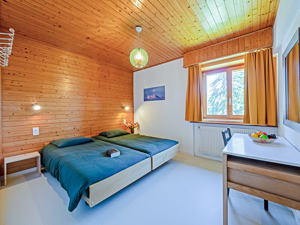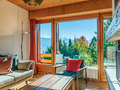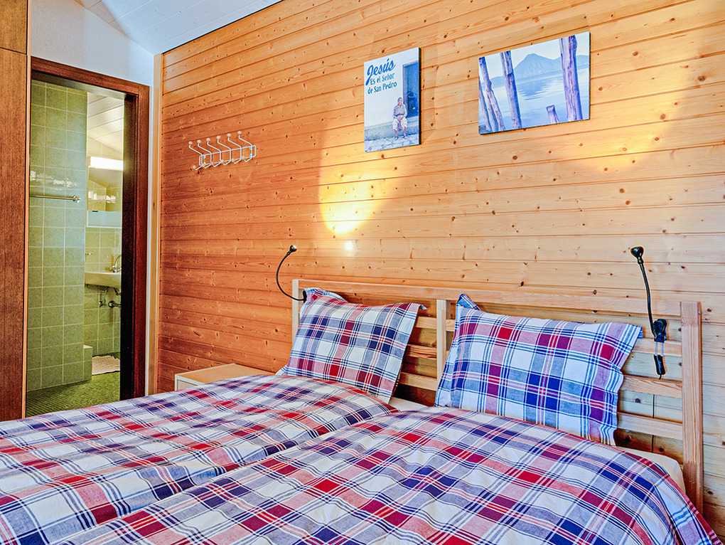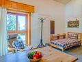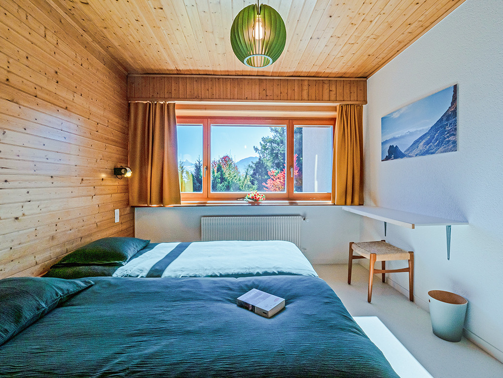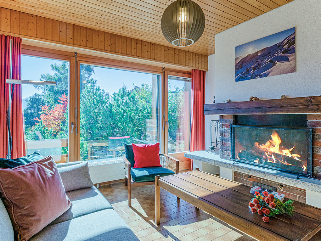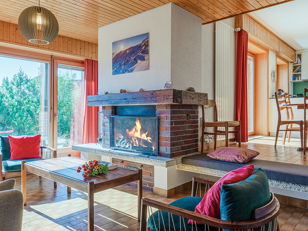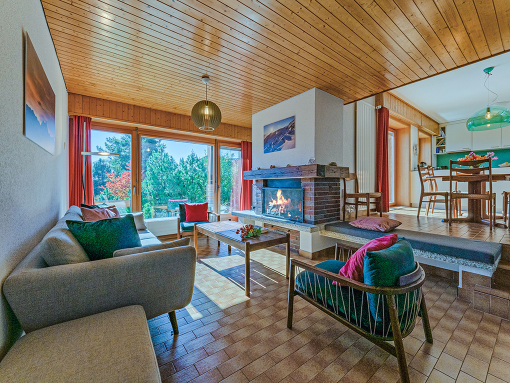 Ch 361.22 Wohnung 4-11 Pers.: 5-Zimmerwohnung mit 150 qm Wohnfläche über 2 Etagen. Parterre: Großzügiger Wohnraum (50 qm) über 2 Ebenen mit Panoramafenstern, Sitzgruppe am Kamin, Kabel-TV, Esstisch, moderner Einbauküche (Backofen, Spülmaschine), Terrasse. Großes Doppelzimmer. Doppelzimmer. Bad: Dusche, 2 Waschbecken. 2-Bettzimmer mit Etagenbett. Separates WC, Wb. 1. Etage (Zugang über Gemeinschaftsflur): Großes 5-Bettzimmer, ausgebaut bis zum Dachboden mit sehr schönem Blick, Einzelbett, Doppelbett, Etagenbett, eigenem Bad (Dusche, Wb, WC).