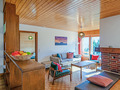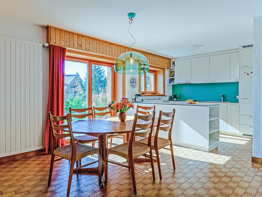 Haus: Sehr gepflegte Chaletwohnung mit Kamin. Regionaltypisches Ferienhaus mit zwei schönen Ferienwohnungen. Gemütliche, familiäre Chalet-Atmosphäre mit Holzvertäfelung in vielen Räumen. Offen gestaltete, sehr großzügige Architektur. Moderne Komfort-Ausstattung. Internetzugang kostenlos über W-Lan. Pellet-Zentralheizung. Nichtraucherhaus. Terrasse mit Sitzmöbeln. Kleiner Garten mit Sonnenliegen. Garage für einen kleinen Pkw. 2 weitere Pkw-Stellplätze am Haus.