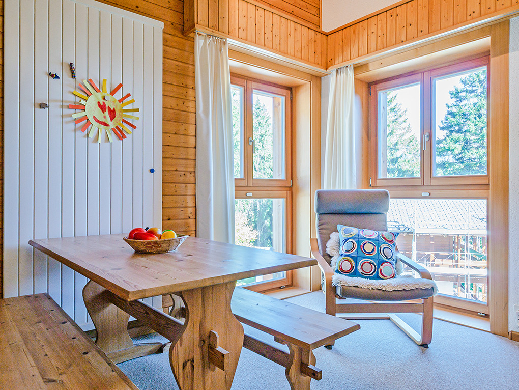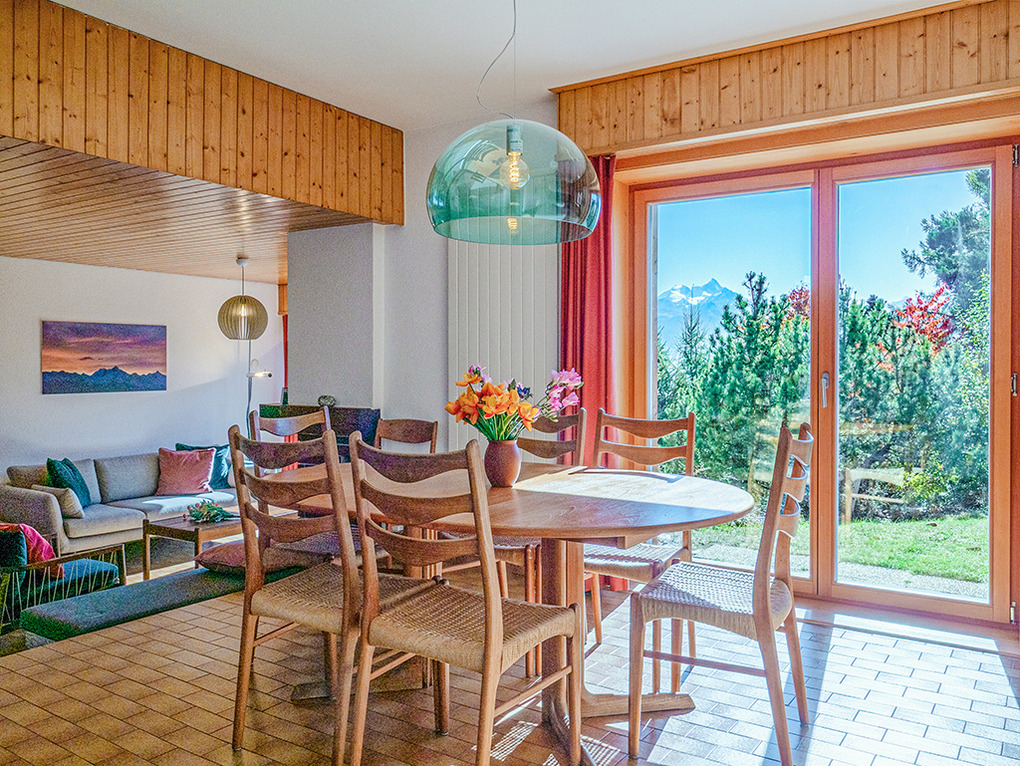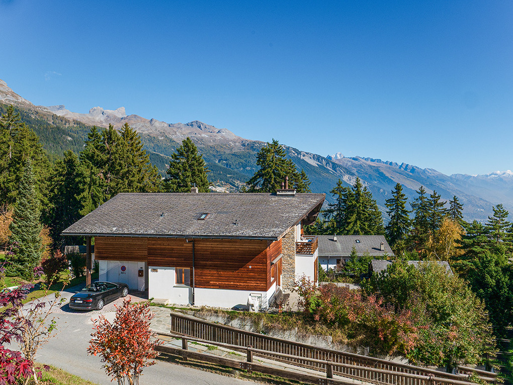 Ort: Crans-Montana.Hervorragende Lage in der Nähe der Talabfahrt: Gondel Les Violettes nur 350 m! Ruhige Lage in einer Chaletsiedlung mit herrlichem Blick auf die imposanten Viertausender des Wallis. Kostenloser Ortsbus 350 m. Bahnhof Standseilbahn 1 km.