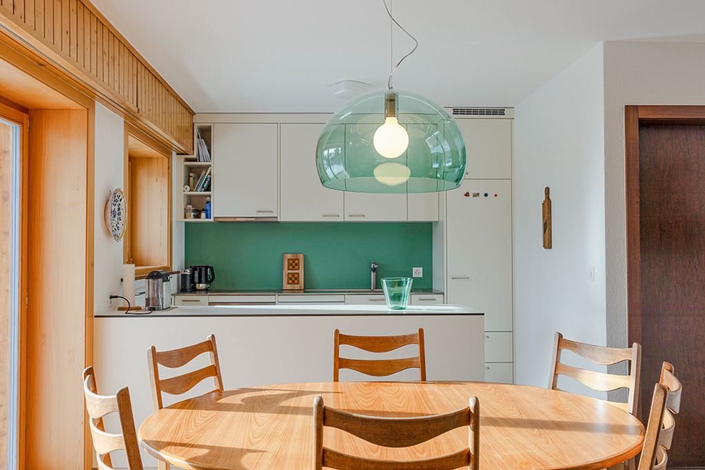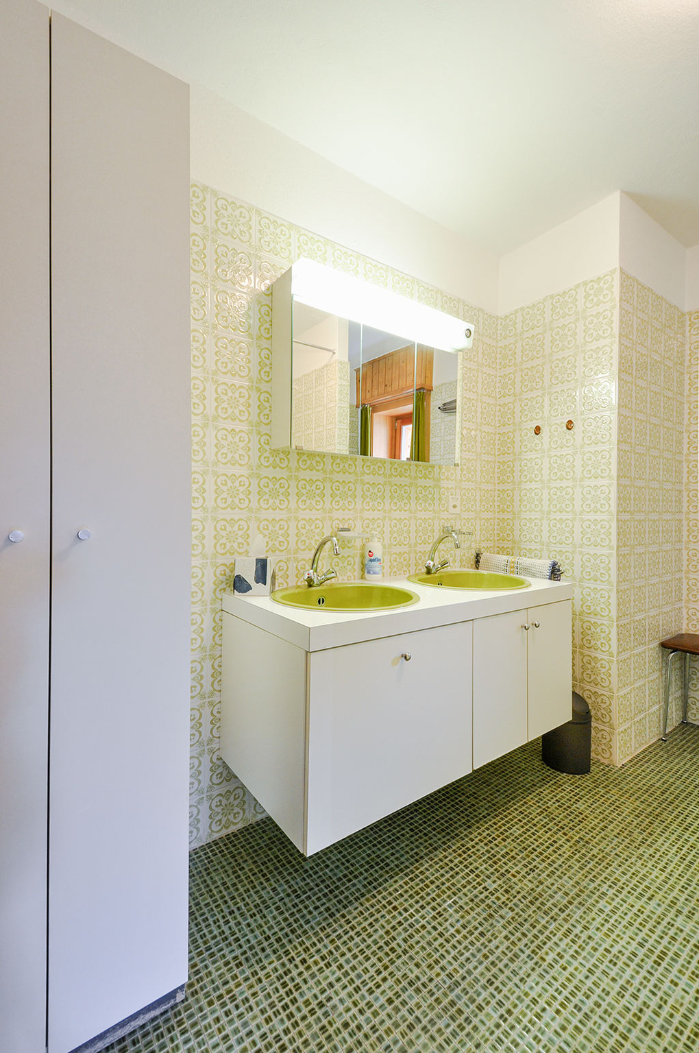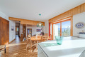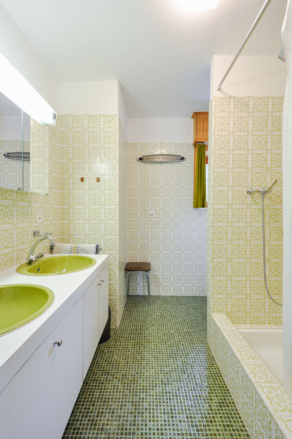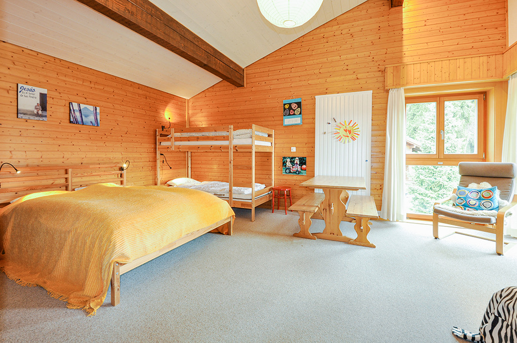 Ch 361.22 Wohnung 4-11 Pers.: 5-Zimmerwohnung mit 150 qm Wohnfläche über 2 Etagen. Parterre: Großzügiger Wohnraum (50 qm) über 2 Ebenen mit Panoramafenstern, Sitzgruppe am Kamin, Kabel-TV, Esstisch, moderner Einbauküche (Backofen, Spülmaschine), Terrasse. Großes Doppelzimmer. Doppelzimmer. Bad: Dusche, 2 Waschbecken. 2-Bettzimmer mit Etagenbett. Separates WC, Wb. 1. Etage (Zugang über Gemeinschaftsflur): Großes 5-Bettzimmer, ausgebaut bis zum Dachboden mit sehr schönem Blick, Einzelbett, Doppelbett, Etagenbett, eigenem Bad (Dusche, Wb, WC).