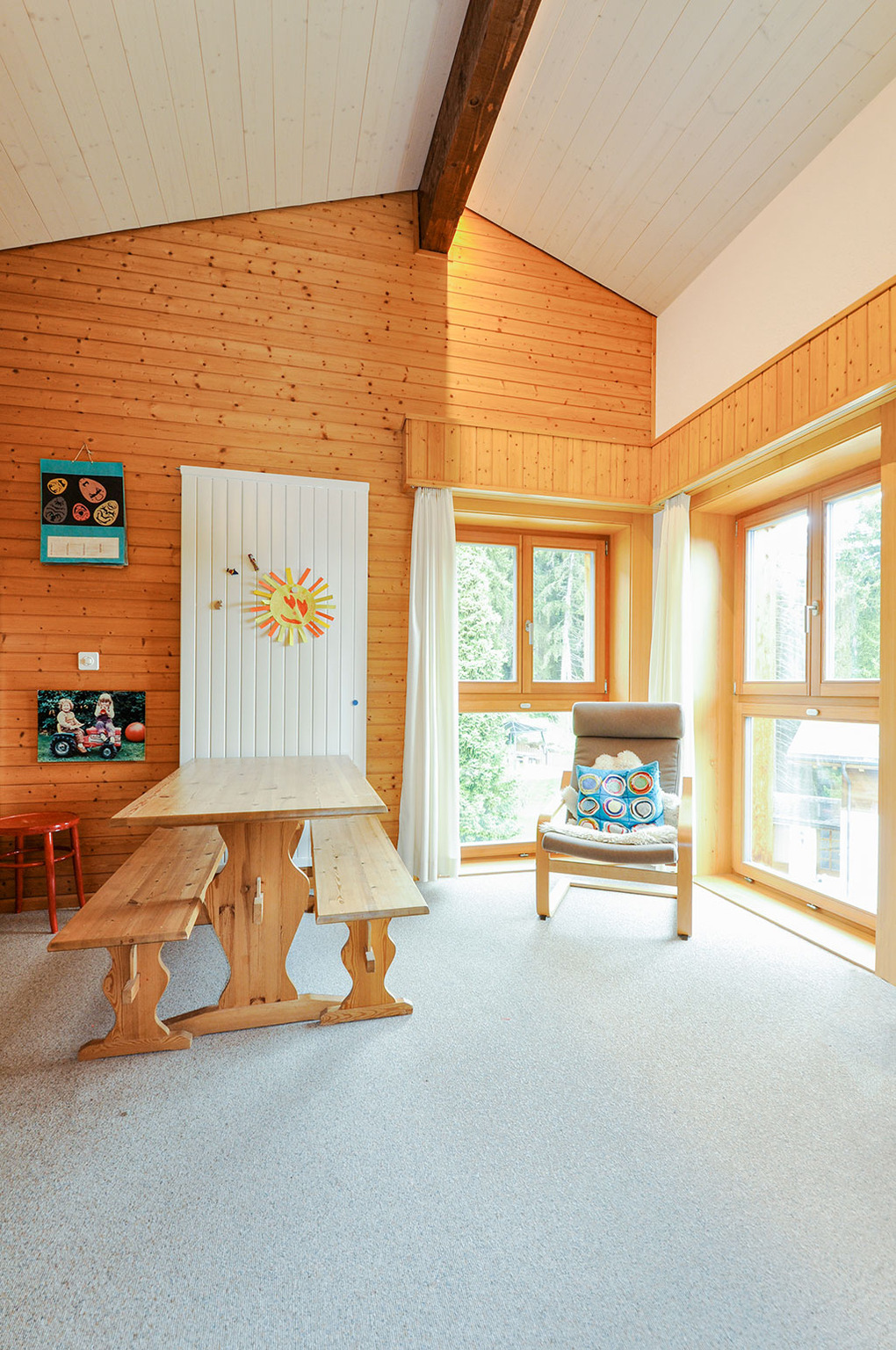 Im Haus (Gemeinschaftsnutzung): großer Aufenthalts- und Spieleraum mit Tischtennis-Platte, Klavier, Sofa. Waschraum mit Waschmaschine, Trockner.