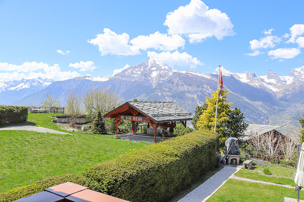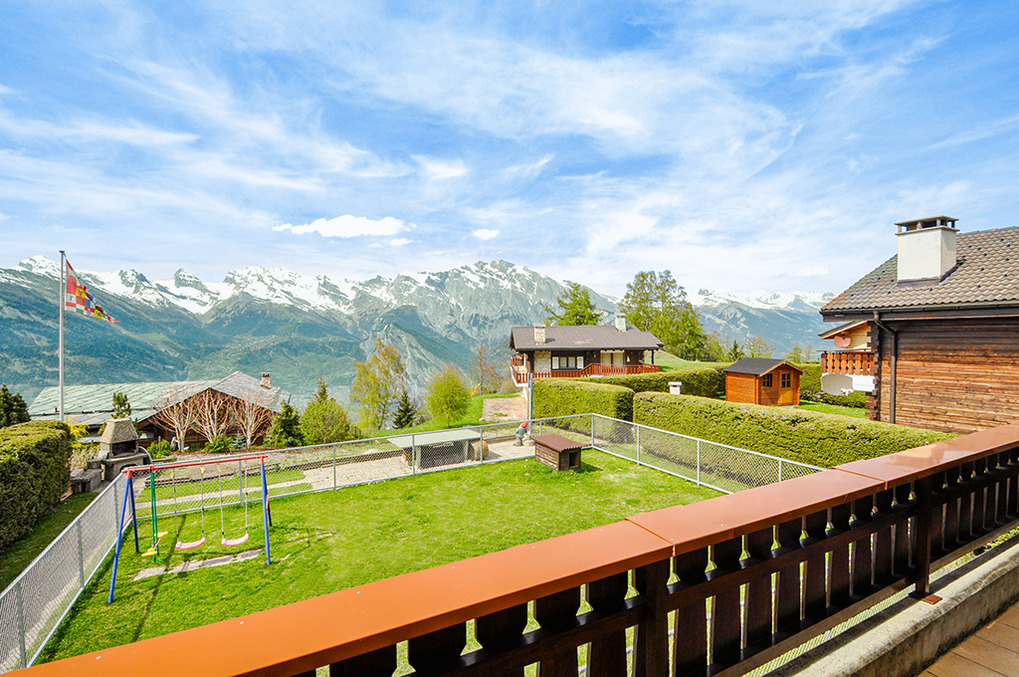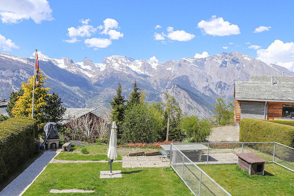 Ort: Bergdorf La Tzoumaz (Mayens-de-Riddes). Das sympathische Dorf liegt auf 1500 m zwischen Nendaz und Verbier. Ruhige Lage in einer Chaletsiedlung am Ortsrand. Ortsmitte 2 km. Gondelstation 1,7 km. Skibus 100 m.