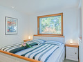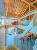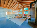 1. Etage: Sehr schöner, bis zum Dachgiebel ausgebauter Wohnraum (40 qm) mit großer Panoramafensterfront, gemütlicher Sofa-Sitzgruppe, Schlafsofa (2 Pers.), Kaminofen, Smart-TV, Radio/CD, Balkon. Doppelzimmer mit Bad (Whirlpool-Badewanne, 2 Wb, WC, Bidet), Balkon. 3-Bettzimmer mit Einzelbett, steile Leiter auf Galerie unterm Dach (Doppelmatratze, Stehhöhe max. 1,70 m).