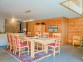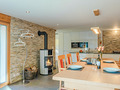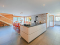 Parterre: Großer Küchen-/Essraum (50 qm) mit Kaminofen, Smart-TV, Esstisch, moderner Einbauküche (Kochinsel, Backofen, Dampfgarer, Mikrowelle, Spülmaschine). Zwei Doppelzimmer. Bad: Bw, Wb, WC. Weiteres Bad: Dusche, 2 Wb, WC.