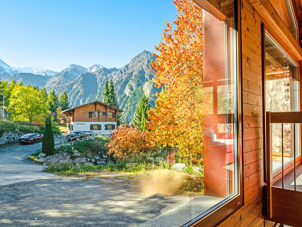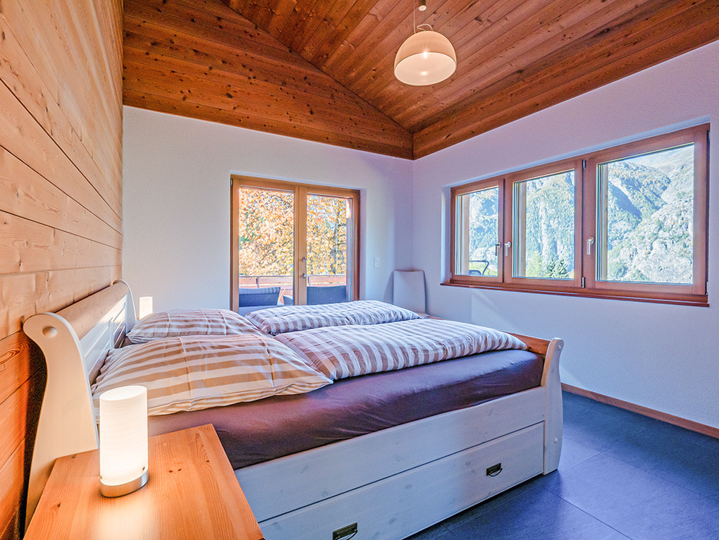 Ort: Niedergrächen. Ruhige Lage auf 1.500 m Höhe in einer Chaletsiedlung unterhalb des autofreien Orts Grächen. Schöner Panoramablick auf das Weisshorn (4.505 m) und die imposante Bergwelt des Mattertals. Ortsmitte Grächen mit Gondel ins Skigebiet, Supermarkt, Restaurants 2,5 km. Skibus 250 m. Zermatt mit Matterhorn nur 25 km! Saas Fee 30 km. Pkw-Zufahrt bis zum Haus (die letzten 150 m steil, Winterausrüstung erforderlich).