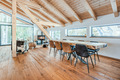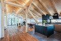 1. Etage (Hanglage): Haupteingang, Garderobe. Sehr schöner, bis zum Dachgiebel ausgebauter Wohnraum (100 qm!) mit großer Panoramafensterfront, gemütlicher Sofa-Sitzgruppe am großen Flachbild-Smart-TV, weiterer Sitzgruppe am Kaminofen, Schlafbereich mit Doppelbett, Esstisch, sehr gut ausgestatteter Einbauküche (Backofen, Spülmaschine, Gefrierschrank), Balkon. Bad: Dusche, Bw, Wb, WC.