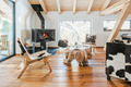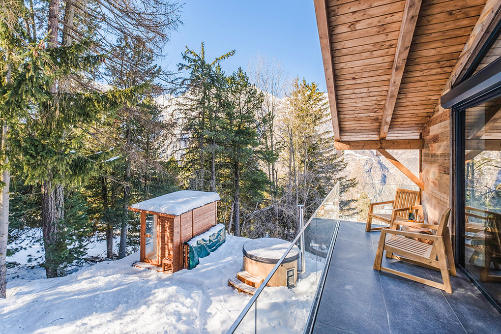 Haus: Einzigartiges Luxus-Chalet mit Sauna, Dampfbad und skandinavischem Hot-Tub. 5 Zimmer-Chalet mit 220 qm Wohnfläche über 2 Etagen. 2 Wohnräume, 3 Schlafräume, 3 Bäder! Zentrum des Hauses ist der großzügig bis in den Dachgiebel ausgebaute Wohnraum mit großer Panoramafensterfront. Moderne, sehr hochwertige Komfort-Ausstattung. Internet über W-Lan. Smart-TV, Home-Cinema mit Beamer, Dampfbad. Waschmaschine, Trockner. Fußbodenheizung. Balkon (Sitzmöbel). Terrasse mit Panorama-Außensauna, typisch-skandinavischem Hot-Tub. Parkhaus und Parkplätze im Ort (Gebühr, Reservierung empfohlen).