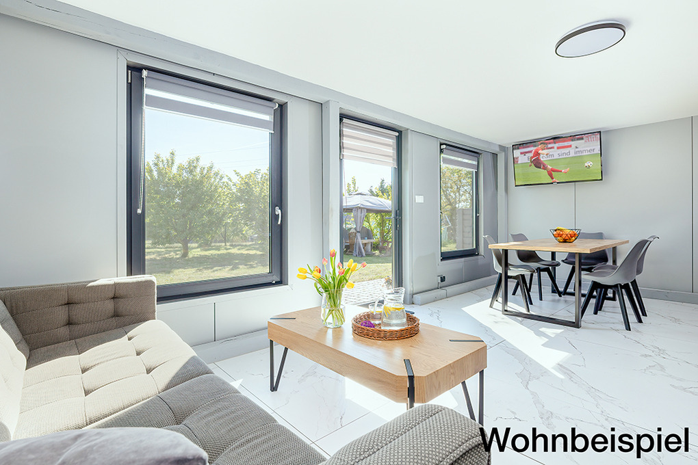PL 15.61 Ferienhaus 1-6 Pers.: Komfortables 3-Zimmerhaus mit ca. 50 qm Wohnfläche über 2 Etagen. Parterre: Wohn-/Essraum mit Sofa (Ausziehcouch 2 Pers.), Flachbild Sat-TV mit deutschen Programmen, großem Esstisch, Küchenzeile (Induktionsherd 2-Platten, Mikrowelle, Spülmaschine). Bad: Dusche, Wb, WC. 1. Etage: Doppelzimmer. 3-Bettzimmer mit 2 Einzelbetten, Schlafsessel. Kleines Bad : Wb, WC. Terrasse mit Sitzmöbeln, Grill. Hinweis: die maximale Belegung des Ferienhauses darf 6 Personen nicht überschreiten!