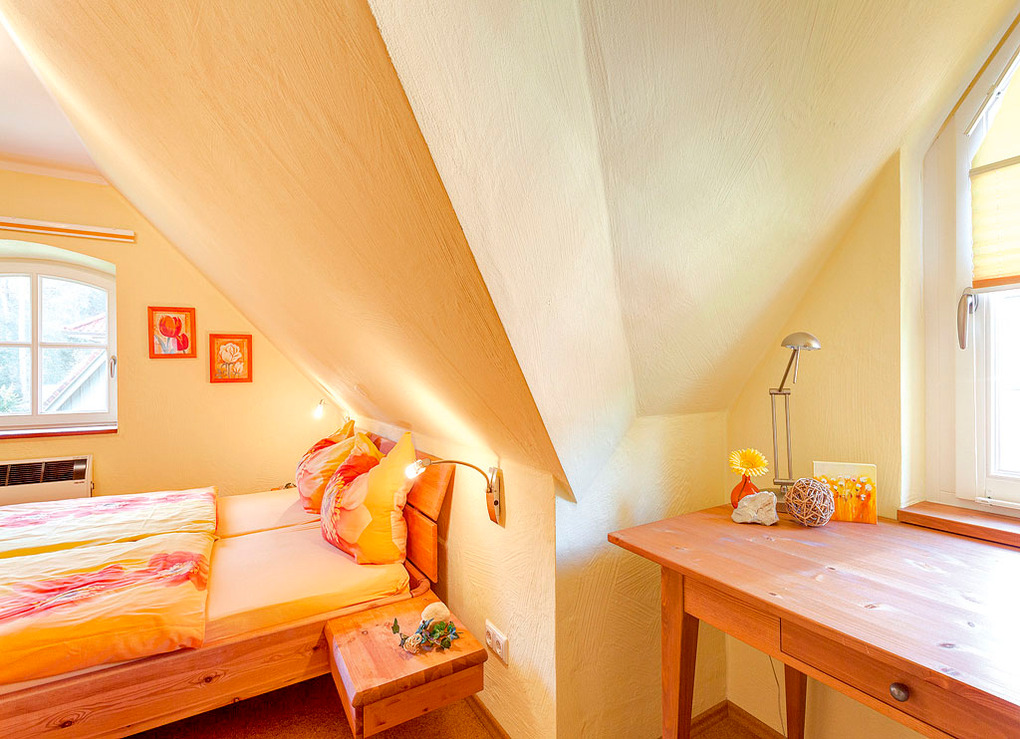 D 120.6 Ferienhaus 2-4 Pers.: Ansprechende 3-Zimmerhaushälfte mit 60 Wohnfläche über 2 Etagen. Parterre: Wohn-/Essraum mit Kaminofen, Couchgarnitur, Sat-TV, Radio-CD, Esstisch, moderner Einbauküche (Backofen, Spülmaschine). Bad/WC. 1. Etage: Doppelzimmer. 2-Bettzimmer.