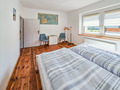 D 46.192 Wohnung 2-6 Pers.: 4-Zimmerwohnung mit 86 qm Wohnfläche, Parterre. Flur mit Garderobe. Großzügiger Wohn-/Essraum mit Couchgarnitur, Sat-TV, Esstisch, Küchenbereich (Backofen, Mikrowelle, Gefrierschrank, Spülmaschine). Doppelzimmer. Zwei 2-Bettzimmer. Bad: Dusche, Wb, WC. Weiteres Bad: Waschmaschine, Wb, WC. Terrasse mit Sitzmöbeln.