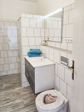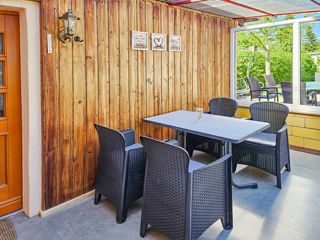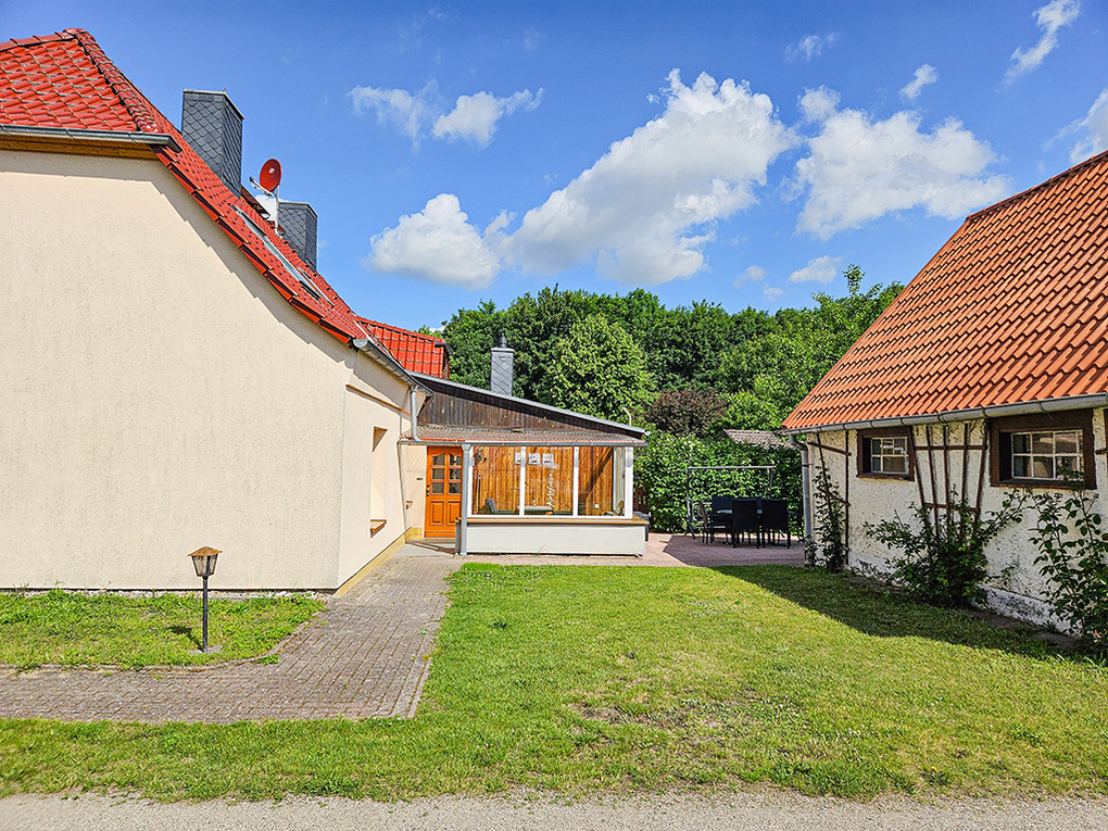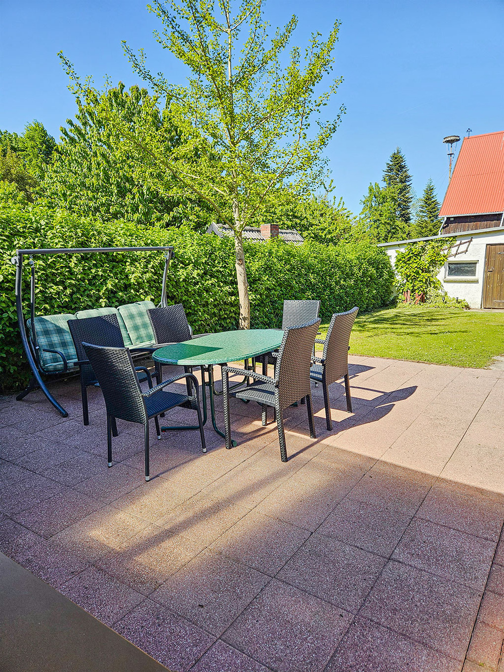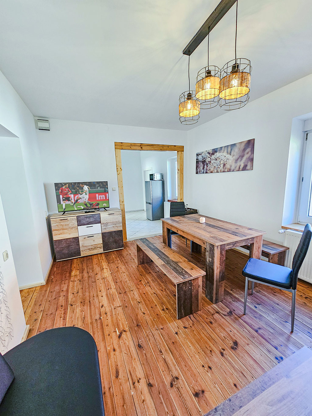 Haus: Regionaltypische Doppelhaushälfte mit einer Ferienwohnung, 2025 komplett renoviert. Mit ihrem eigenen Eingang, zwei Terrassen und kleinem Garten hat die hübsche Fewo Ferienhaus-Charakter. Sehr geschmackvolle Einrichtung, moderne Komfortausstattung. Internetzugang über W-Lan. Waschmaschine. Zentralheizung. Nichtraucherhaus. Überdachte, windgeschützte Terrasse mit Sitzmöbeln. Weitere große Terrasse mit Sitzmöbeln, Hollywood-Schaukel, Grill. Kleiner Garten mit Rasenfläche. 3 Pkw-Stellplätze vorhanden.
