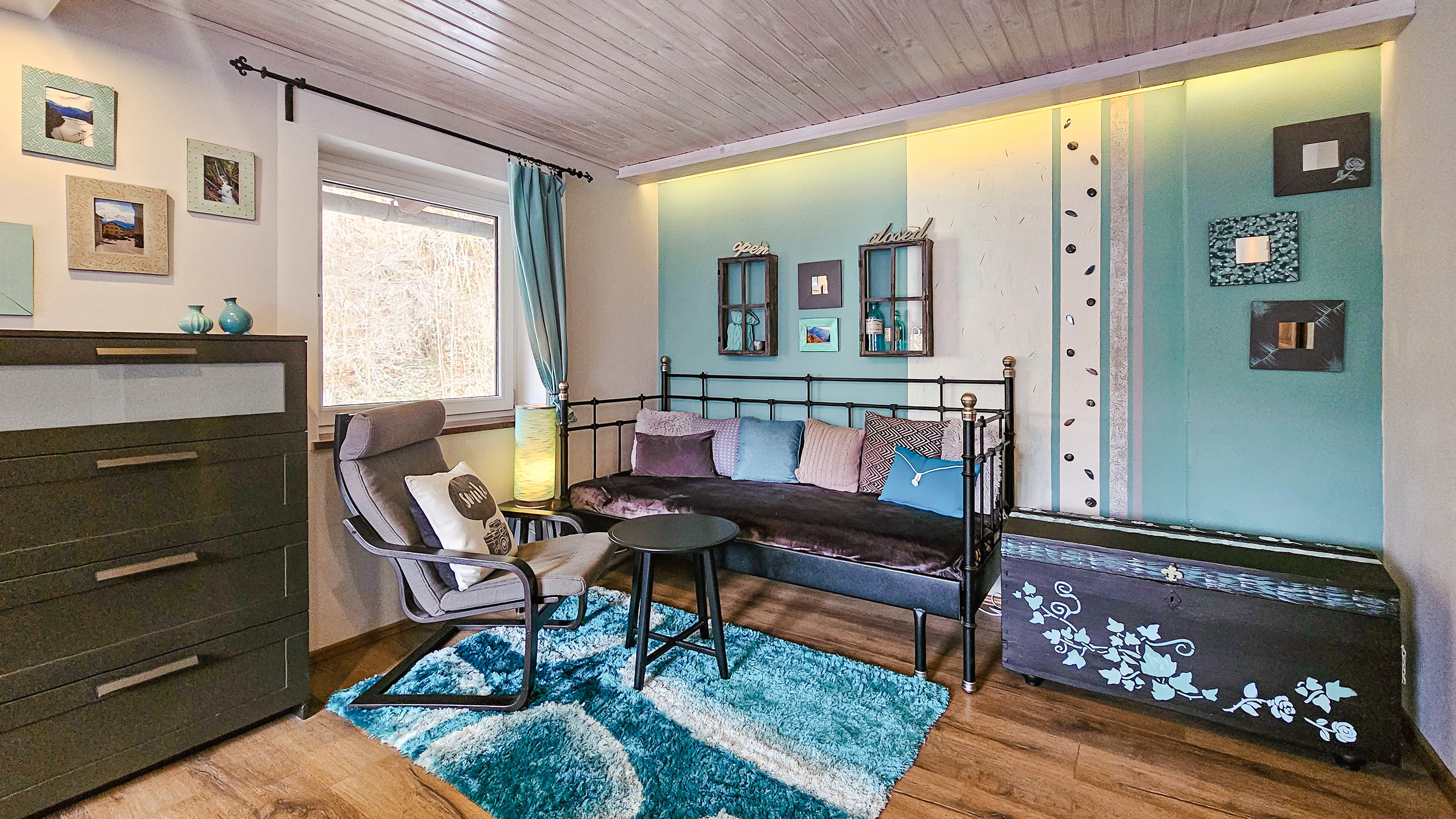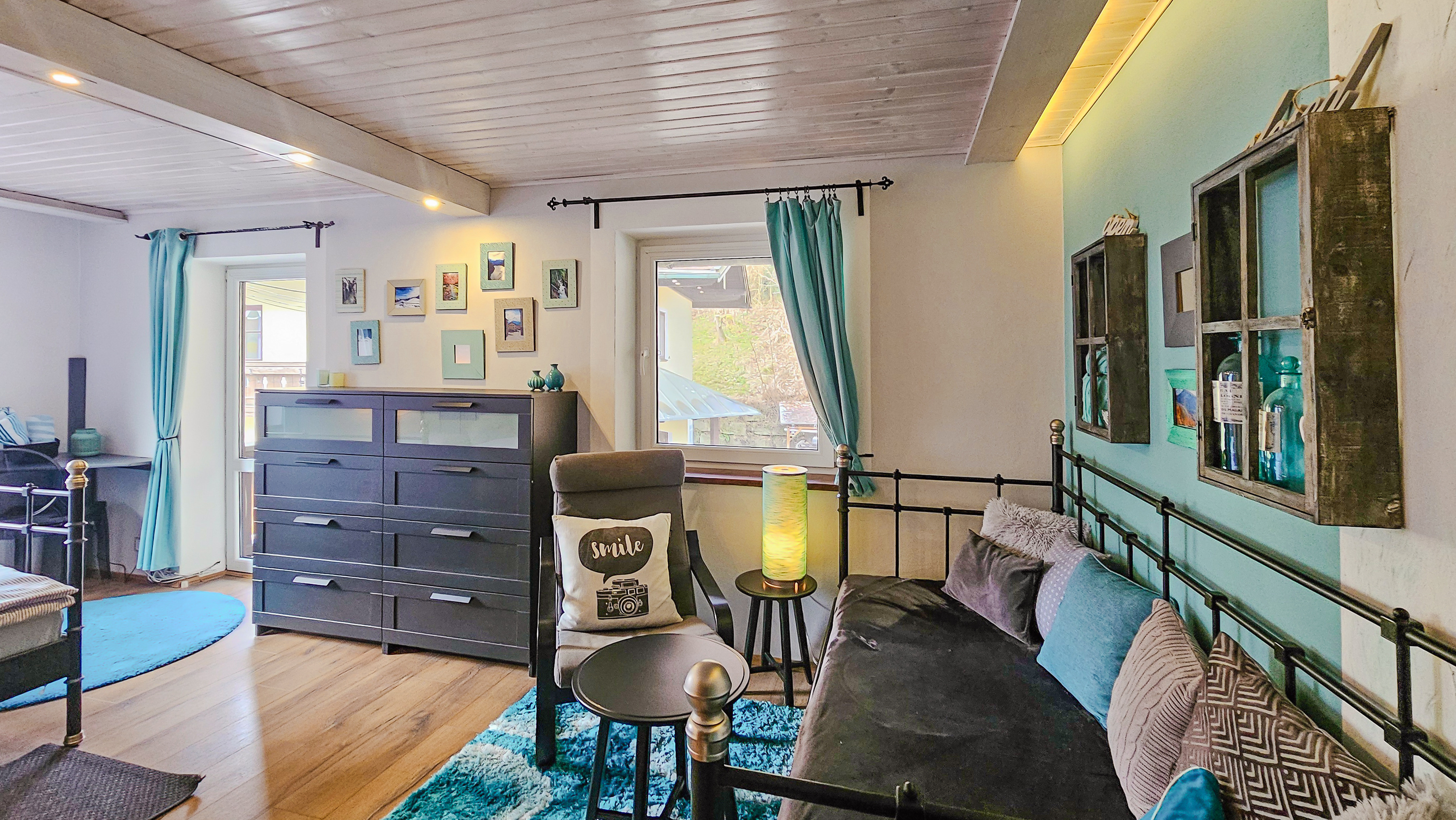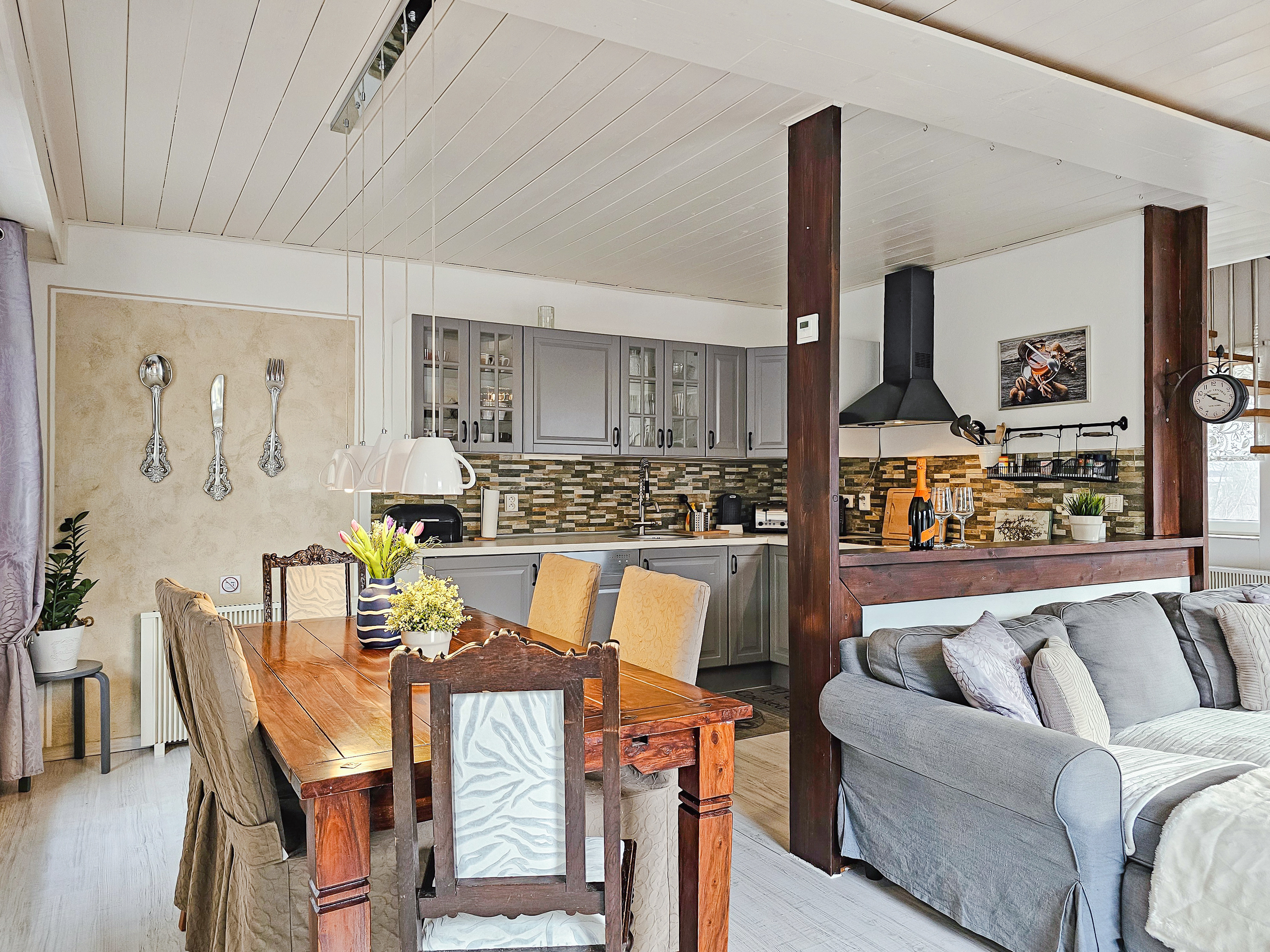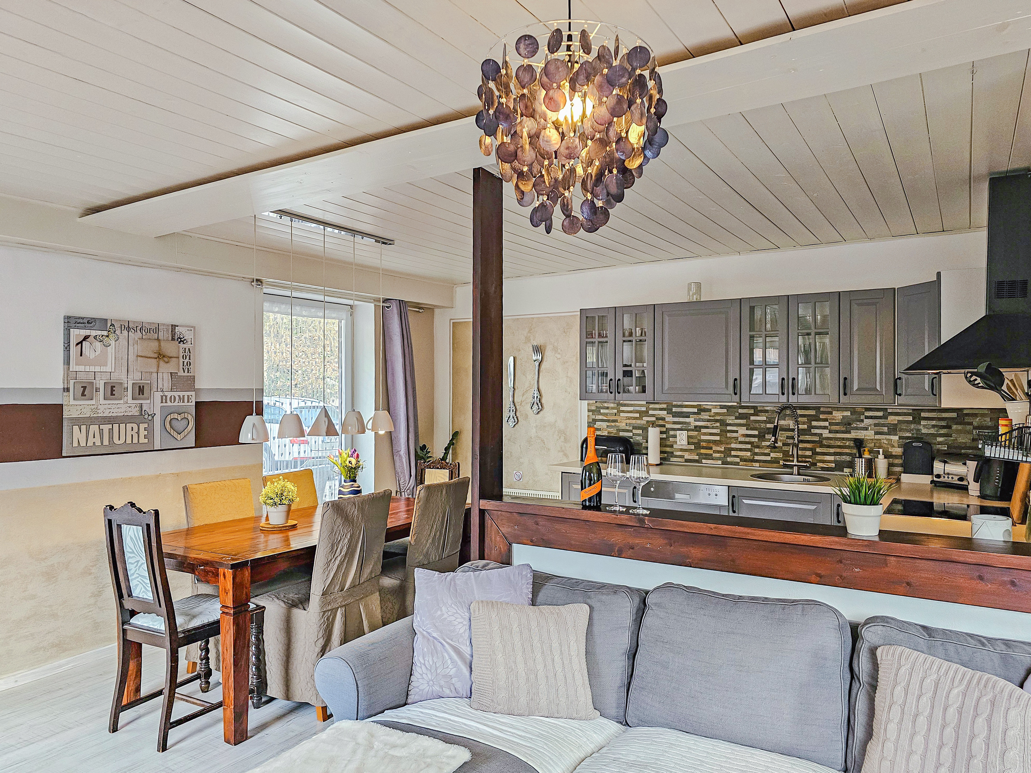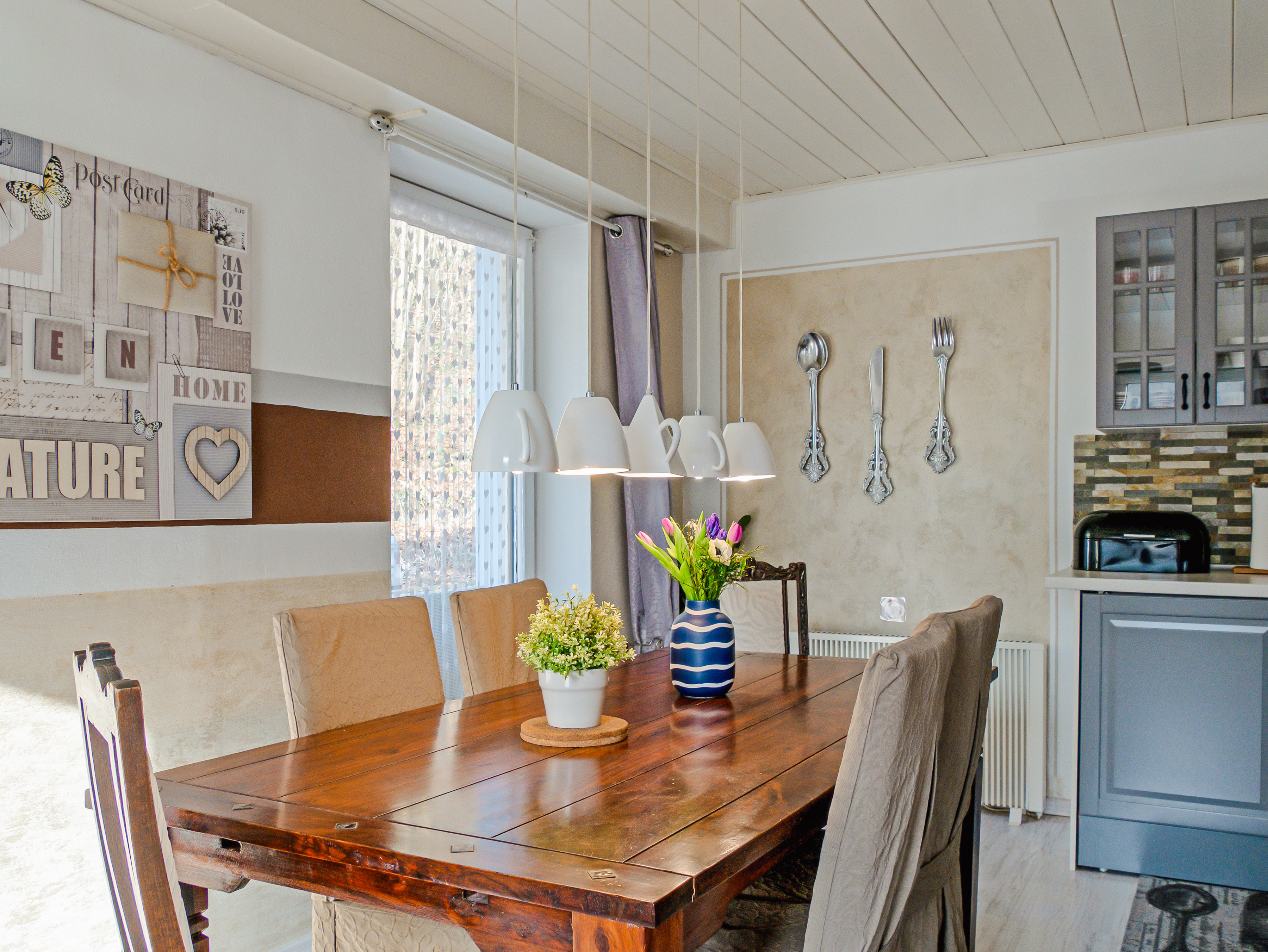Haus: Großzügiges Ferienhaus mit Kaminofen. Geschmackvolle, rustikale Einrichtung. Kostenloser Internetzugang über WLan. E-Heizung. Große Terrasse mit Sitzmöbeln. 2 Pkw-Stellplätze am Haus im Preis inklusive.