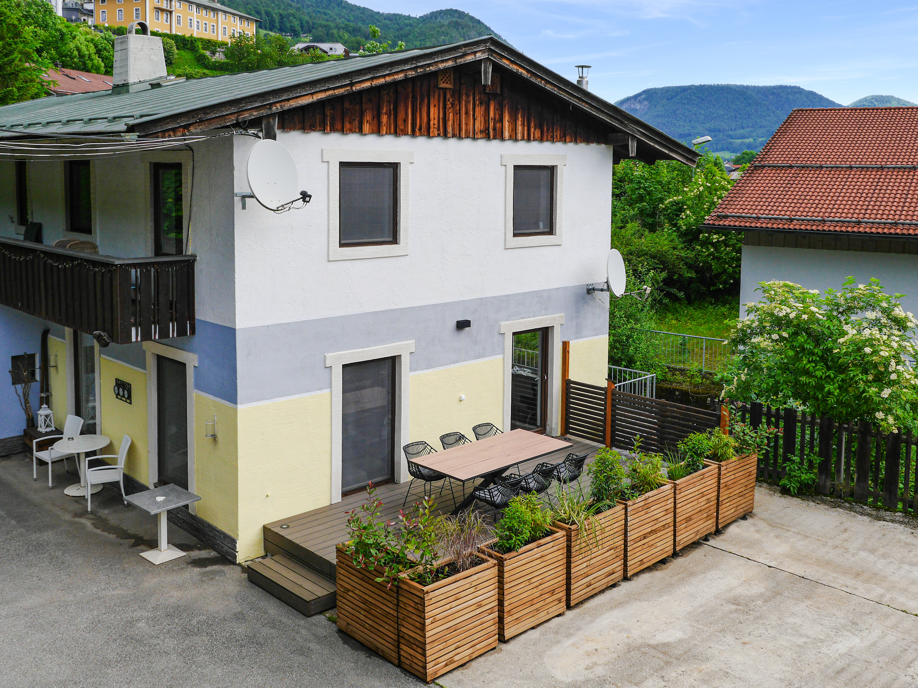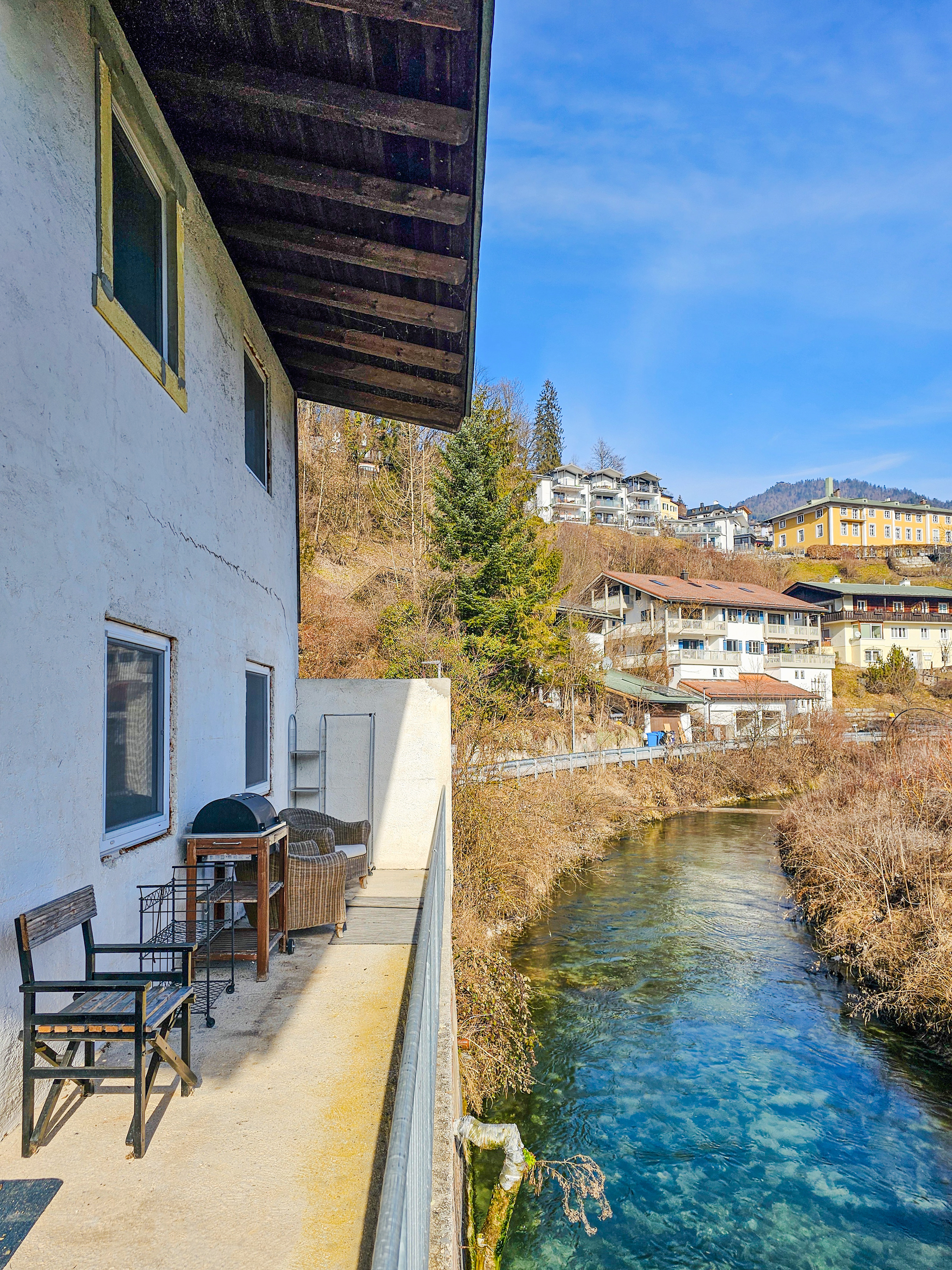 Ort: Berchtesgaden. Erstklassige, ruhige Lage. Supermarkt 400 m, Brauhaus/Restaurant 600 m. Historische Ortsmitte mit Geschäften 900 m, Watzmann-Therme 600 m. Salzbergwerk 1,3 km, Königssee 6 km.