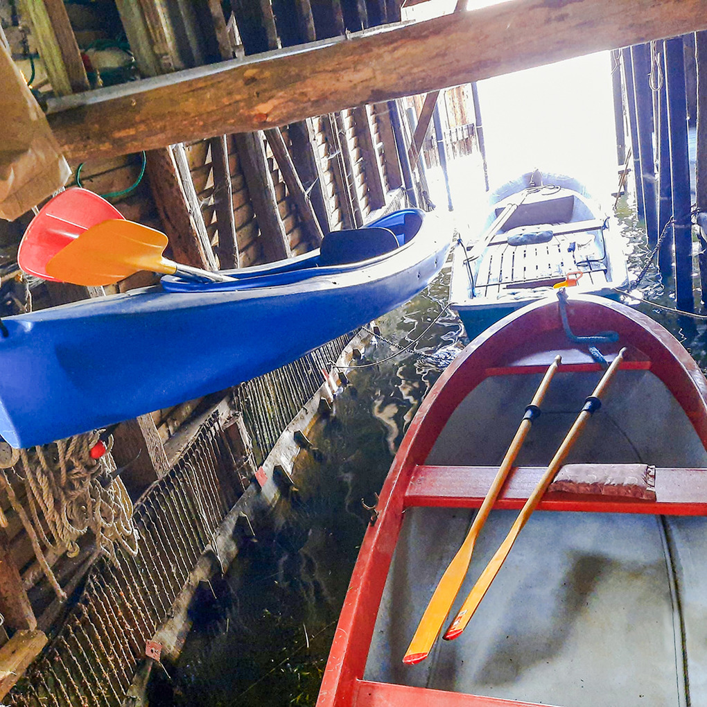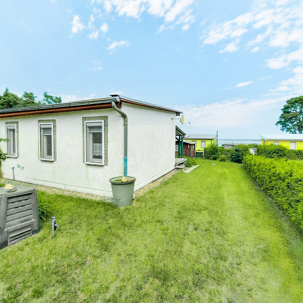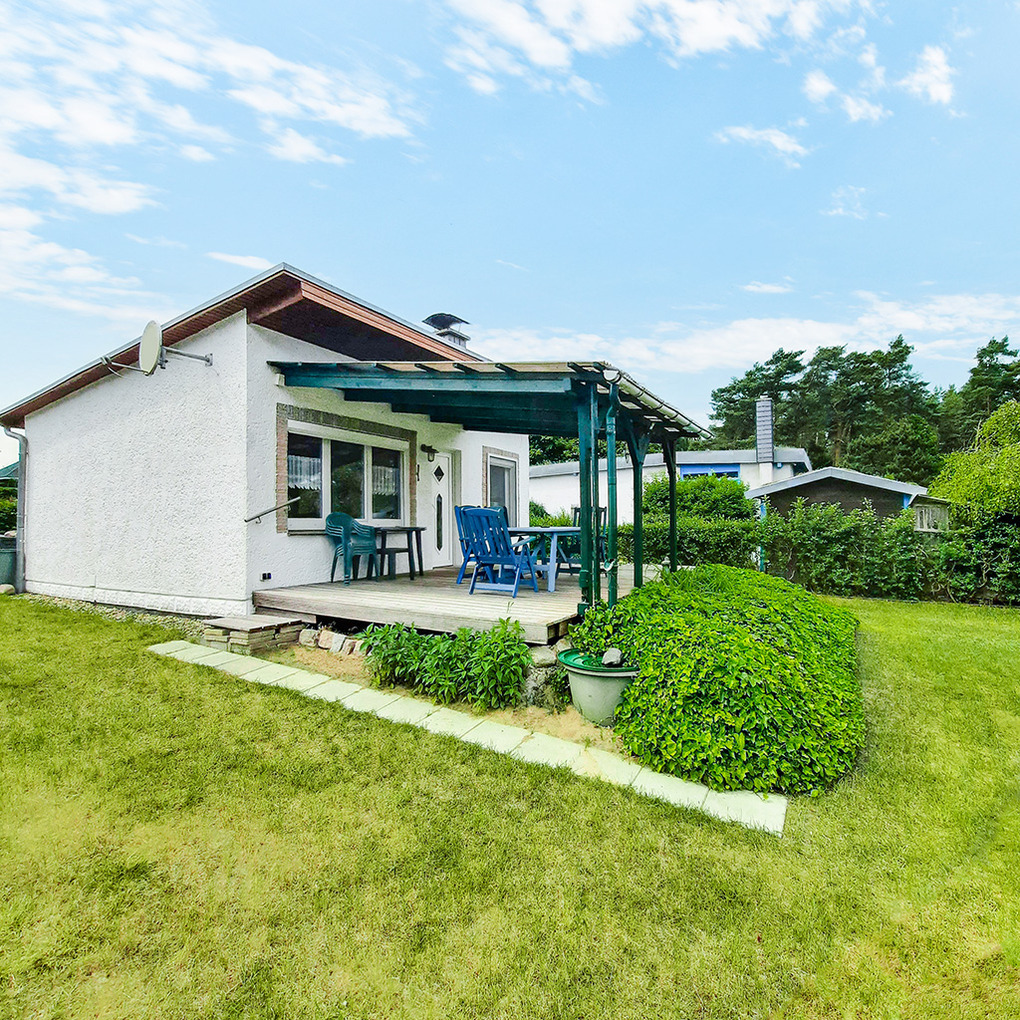 Haus: Freistehender Bungalow mit Kaminofen und Seeblick. Gemütliche Atmosphäre mit Holzvertäfelungen, gepflegte Einrichtung. Heizung über Kaminofen. Nichtraucherhaus. Überdachte Terrasse mit Sitzmöbeln, schönem Wasserblick. Abgeschlossener Garten mit Rasenfläche, Grill. Gartenhaus für Fahrräder. 2 ältere Fahrräder vorhanden. Bootshaus mit Ruderboot (kostenfrei nutzbar). 1 Pkw-Stellplatz vorhanden.
