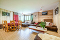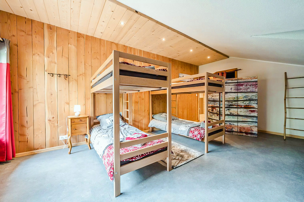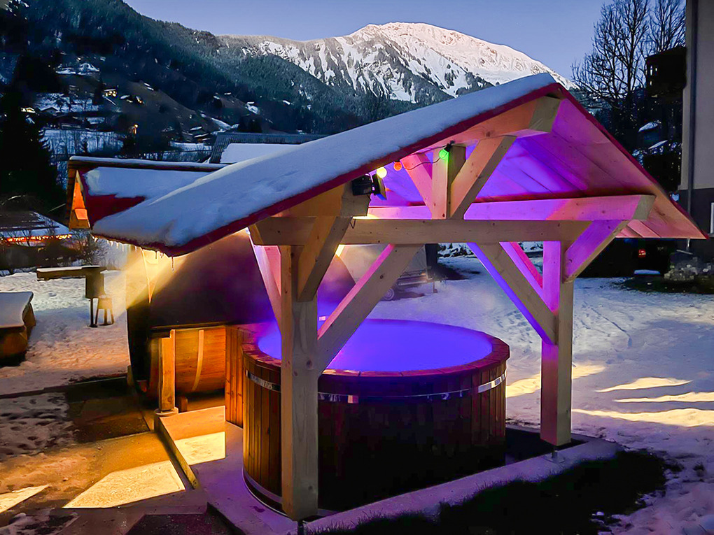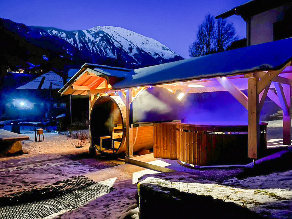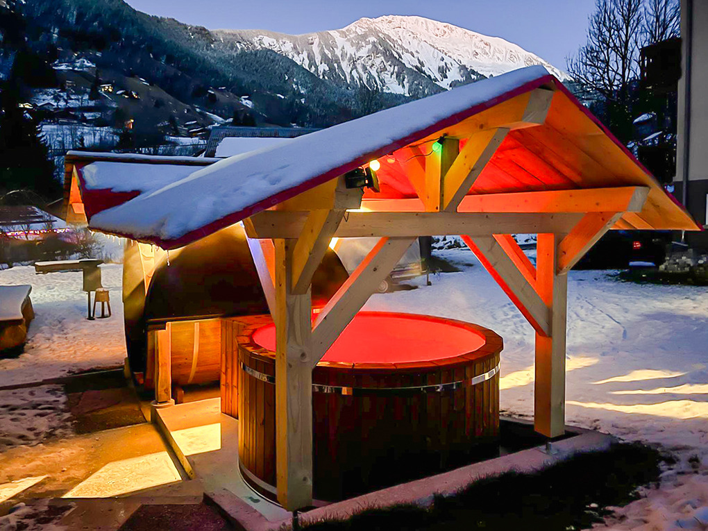 Haus: Schönes Chalet mit Sauna und Whirlpool. Großzügiges 11-Zimmer-Gruppenhaus mit 400 qm Wohnfläche über 3 Etagen. 2 Tagesräume, 8 Schlafräume, alle mit TV, eigenem Bad oder Dusche. Gemütlich-rustikale Chalet-Atmosphäre in allen Räumen. Internet kostenlos über W-Lan. Großer Spieleraum mit Tischtennis-Platte, Kicker. Waschmaschine. Zentralheizung, teils Fußbodenheizung. Terrasse mit Fass-Sauna, überdachtem Whirlpool (schöner Bergblick). Großer Garten mit Feuerschale, Grill, Liegestühlen, Sitzmöbeln, Boule-Bahn. Hinweise: Großer Konferenzraum mit digitalem Whiteboard im Haus (Nutzung nach Vereinbarung, Gebühr). Das Ferienhaus darf aufgrund behördlicher Vorgaben nicht mit mehr als 15 Personen belegt werden.
