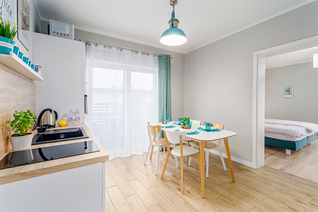 PL 41.27 Wohnung 1-6 Pers.: Niveauvoll eingerichtete 3-Zimmerwohnung mit 70 qm Wohnfläche, 2. Etage. Heller Essraum mit bodentiefer Fensterfront, Esstisch, gut ausgestatteter Küchenzeile (2 Pl.-Ceranfeld, Backofen, Mikrowelle, Spülmaschine). Zwei 3-Bettzimmer mit Doppelbett, Sofa (Schlafcouch 1 Pers.) Sat-TV, Balkon mit Sitzmöbeln. Modernes Bad mit Dusche, Wb, WC.