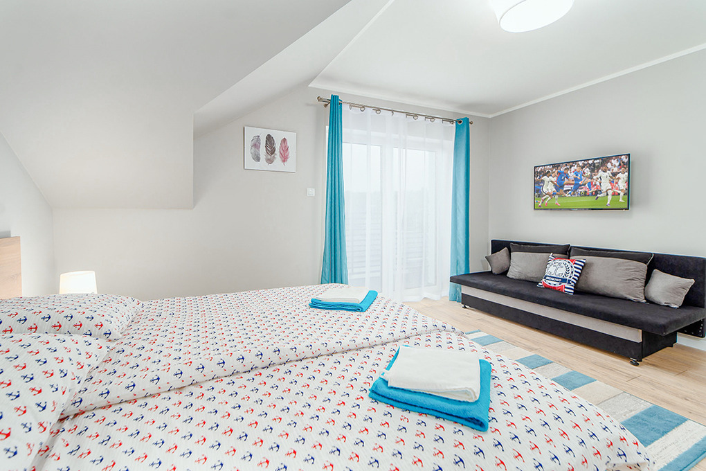 Ort: Grzybowo (Gribow). Kleiner Badeort, ca. 6 km westlich von Kolberg. Sehr gute Lage. Ostseestrand 350 m. Restaurants 150 m. Ortsmitte mit Cafes, Geschäften 600 m.
