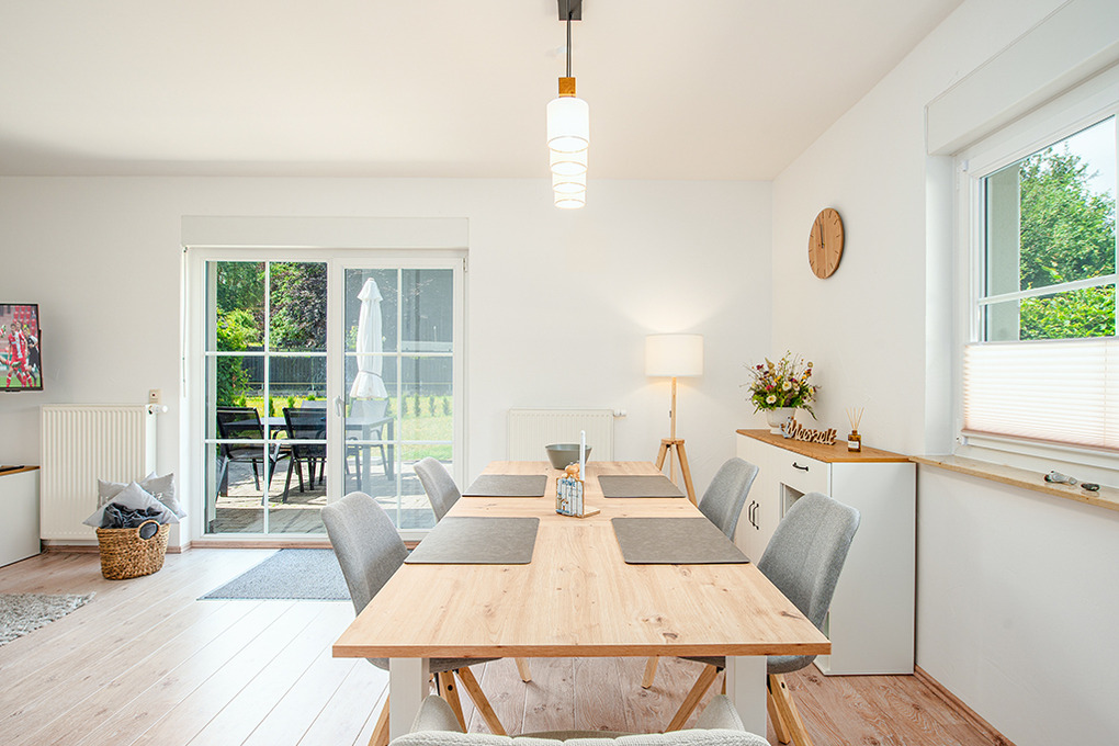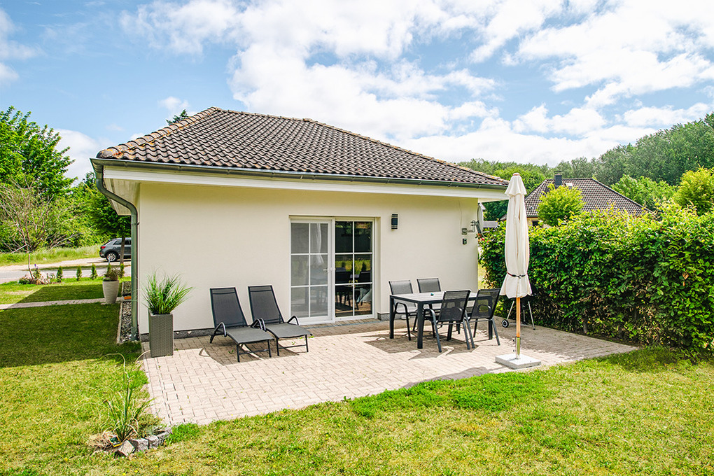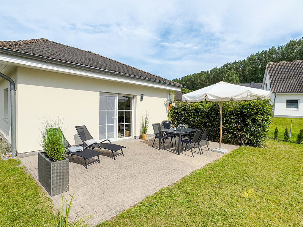 Haus: Modernes Ferienhaus in ansprechender Bauweise. Geschmackvolle Einrichtung mit gemütlichem Ambiente. Kostenloser Internetzugang über W-Lan. Zentralheizung. Nichtraucherhaus. Terrasse mit Sitzmöbeln, Sonnenliegen, anschließender Rasenfläche. 1 Pkw-Stellplatz am Haus.