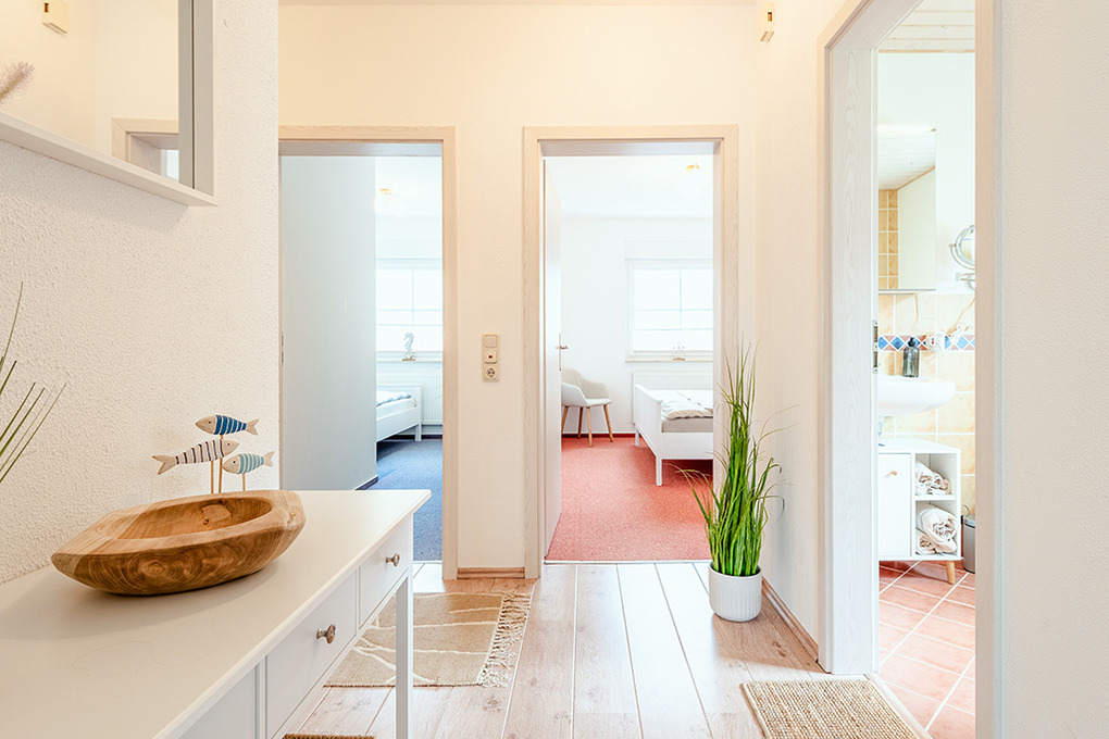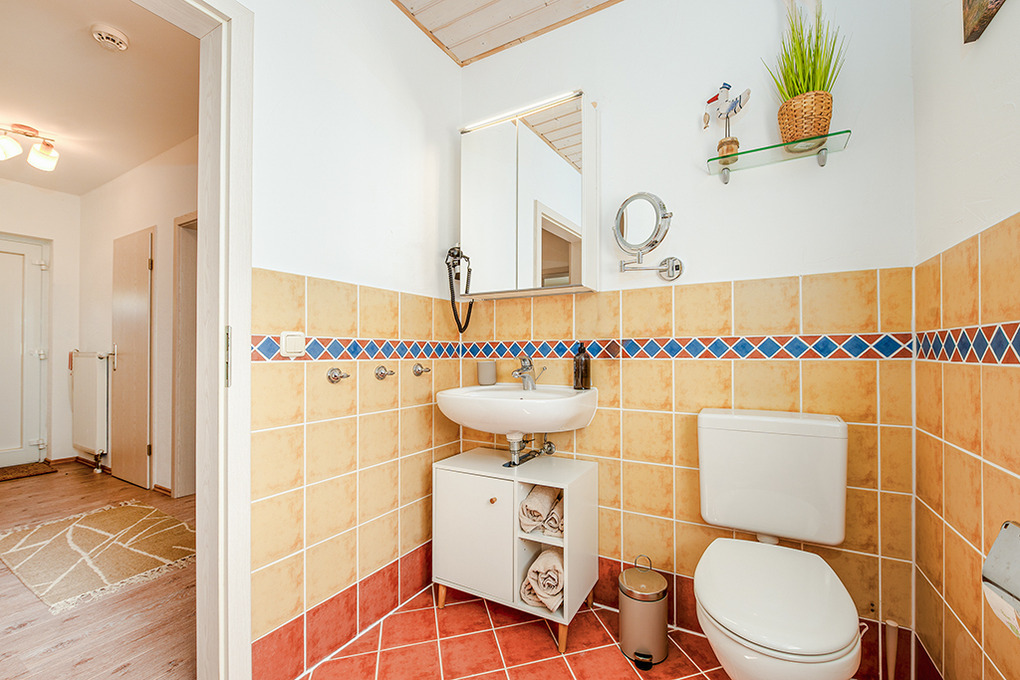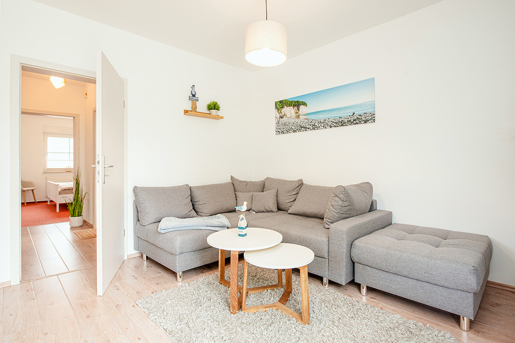 Ort: Glowe. Ruhige Lage in einer Wohnsiedlung. Ortsmitte mit Geschäften, Restaurants 600 m. Ostseestrand 700 m. Seglerhafen mit Bootsverleih 750 m. Erlebniswelt "Splash" mit Schwimmbad, Sauna-, Wellnessbereich, Indoorspielplatz 7 km. Kap Arkona 20 km.