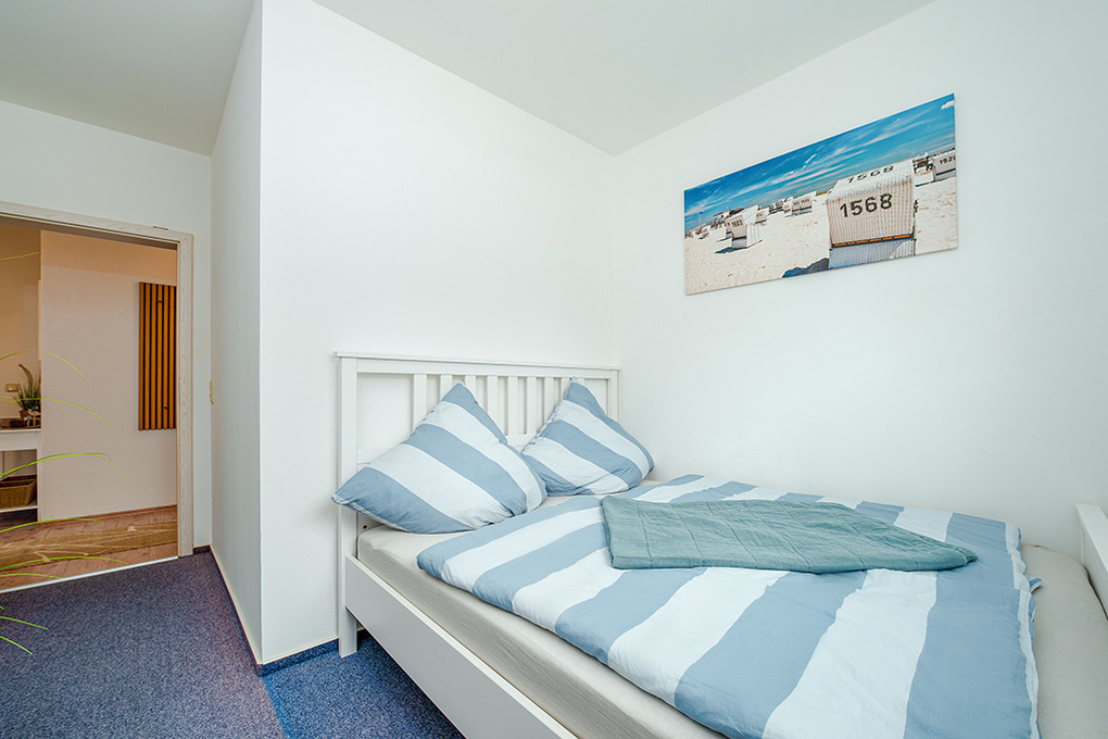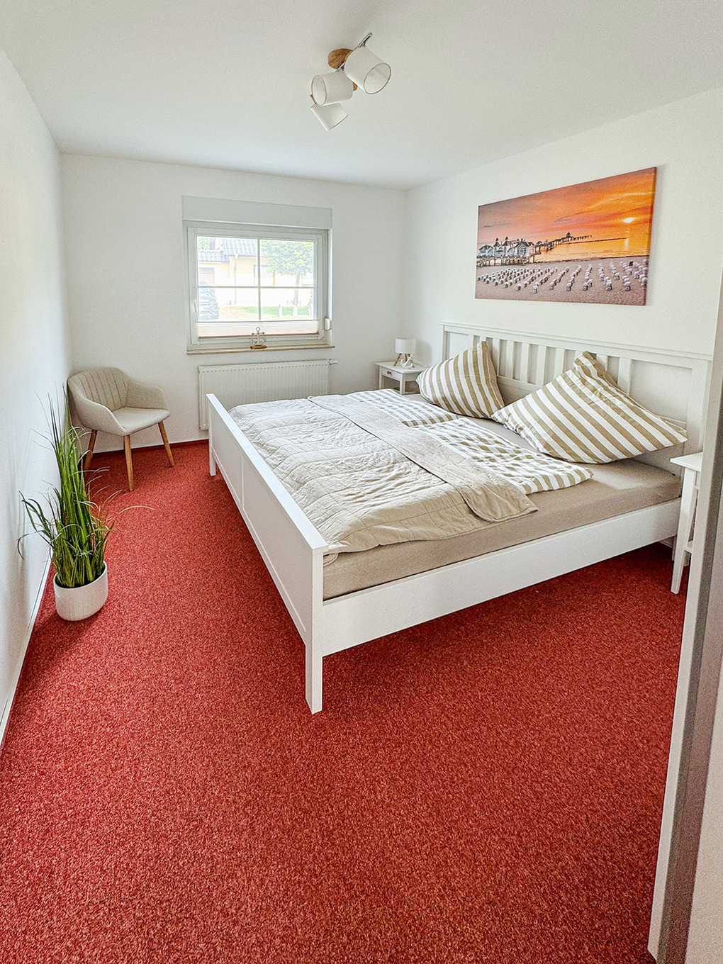 D 120.56 Ferienhaus 2-4 Pers.: 3-Zimmerhaus mit 70 qm Wohnfläche. Schöner Wohn-/Essraum mit Couchgarnitur, Sat-TV, Radio/CD, Esstisch, Küchenzeile (Backofen, Spülmaschine). Zwei Doppelzimmer. Bad: Du, Wb, WC, Waschmaschine.