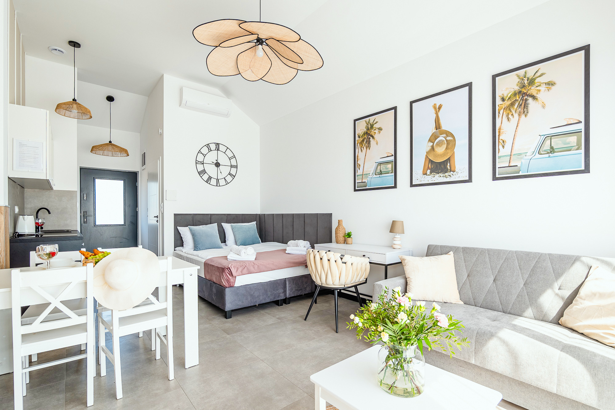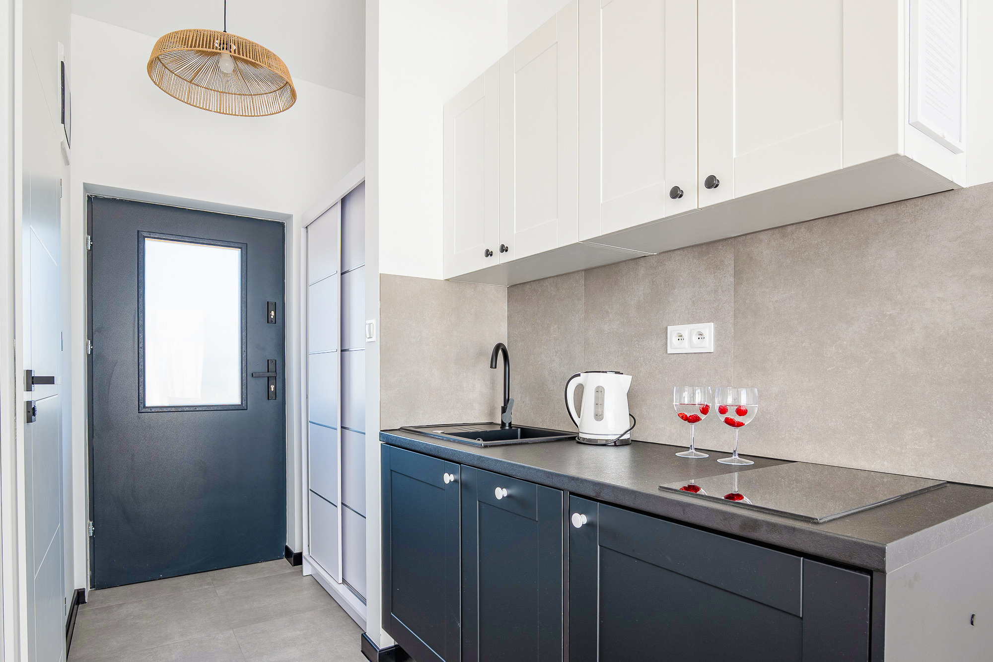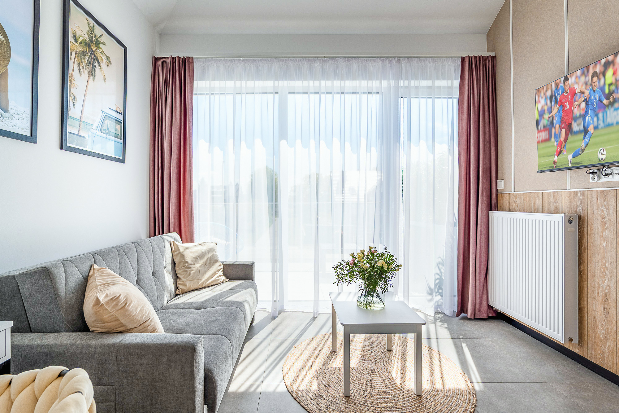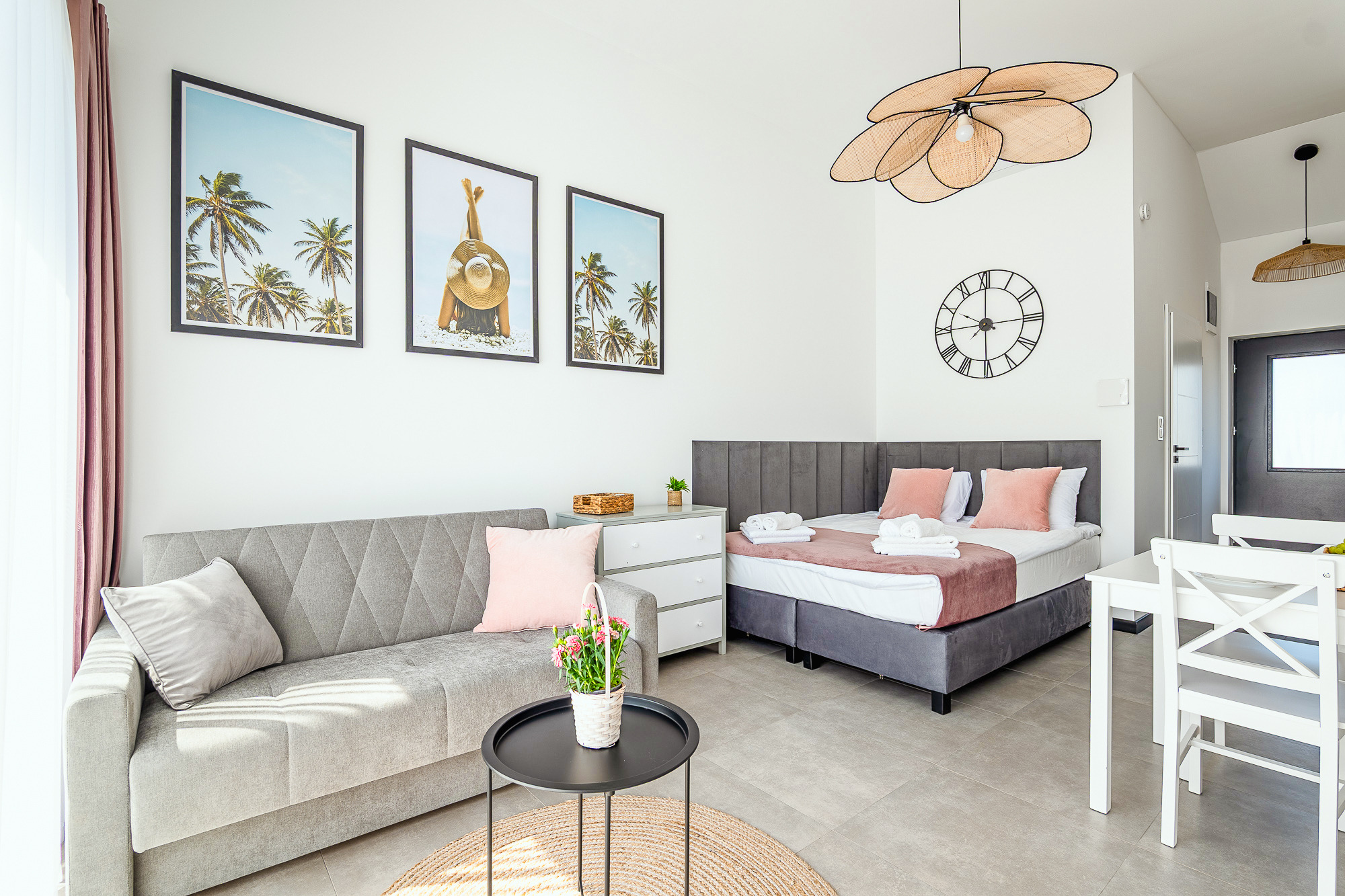 PL 41.24 Wohnung 1-4 Pers.: Niveauvoll eingerichtete 1-Zimmerwohnung mit 28 qm Wohnfläche, 1 Etage. Mit viel Liebe zum Detail möblierter, heller Wohn-/Essraum mit bodentiefer Fensterfront, Doppelbett und Klappcouch (Schlafsofa 2 Pers.), SMART-TV, Esstisch, Küchenzeile (2 Pl.-Induktionsfeld, Spülmaschine). Bad/WC. Balkon mit Sitzmöbeln.