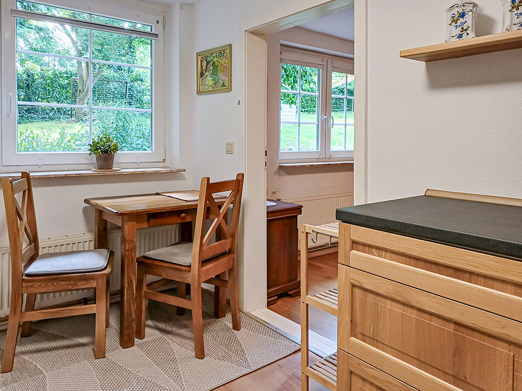 Haus: Regionaltypisches Reetdachhaus mit einer gemütlichen Ferienwohnung. Geschmackvolle Einrichtung, moderne Ausstattung, eigener Zugang. Internet kostenlos über W-Lan. Zentralheizung. Nichtraucherwohnung. Kleine Terrasse mit Sitzmöbeln, Grill. Großer Garten mit Spiel- und Liegewiese, Ruheliegen (Gemeinschaftsnutzung). Waschküche mit Waschmaschine, Trockner (Gemeinschaftsnutzung, Gebühr). Pkw-Stellplatz vorhanden (kostenfreier, öffentlicher Parkplatz direkt gegenüber dem Haus). Hinweise: Partys, Veranstaltungen, Junggesellenabschiede oder Ähnliches sind nicht erlaubt. Mehrere ältere Fahrräder stehen kostenlos und ein E-Bike gegen Gebühr zur Verfügung (je nach Verfügbarkeit, Gemeinschaftsnutzung mit 2 weiteren Fewos)
