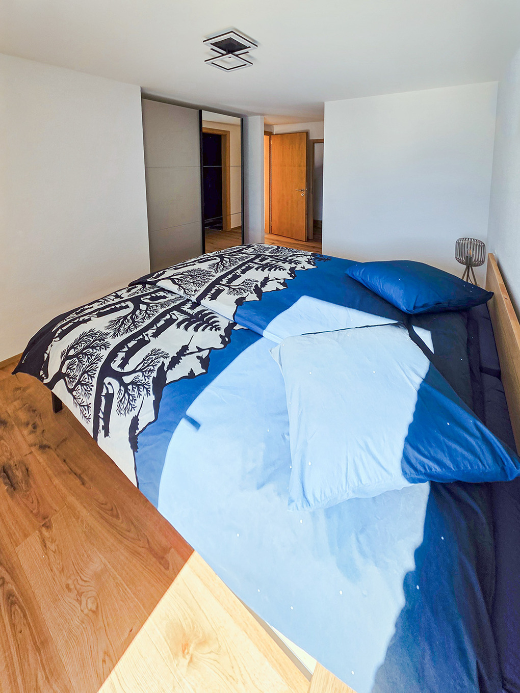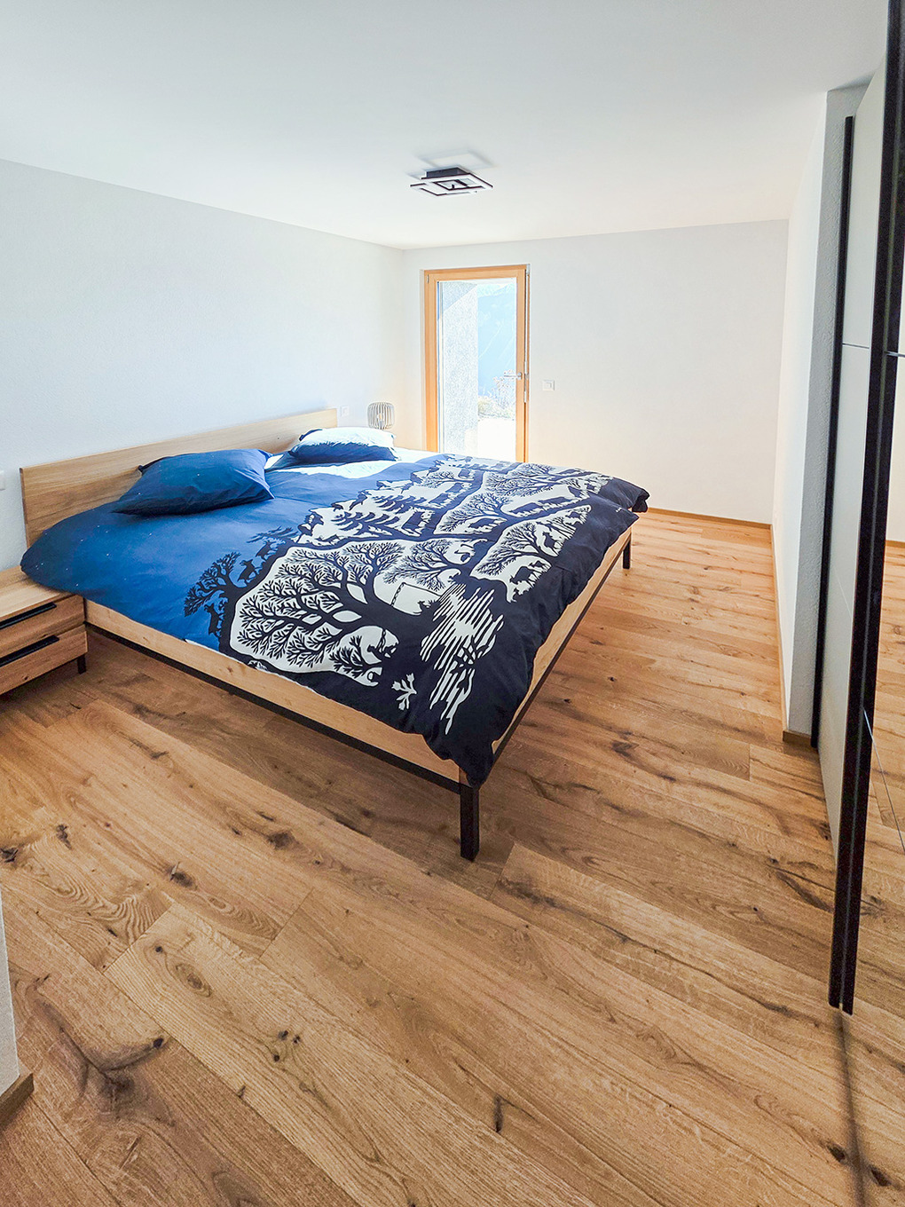 Haus: Regionaltypisches Naturstein-Chalet, 2025 komplett saniert und umgebaut zum modernen Komfort-Chalet mit Kaminofen. 3-Zimmerhaus mit 80 qm Wohnfläche über 2 Etagen. Geschmackvolle Einrichtung, moderne Komfortausstattung. Internet über W-Lan. Waschmaschine, Trockner. Handtuchtrockner in den Bädern. Fußbodenheizung (Wärmepumpe). Nichtraucherhaus. 2 Terrassen nach Süden und Westen, Sitzmöbel. 2 Pkw-Stellplätze vorhanden. Ladestation für E-Autos am Haus.