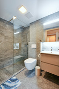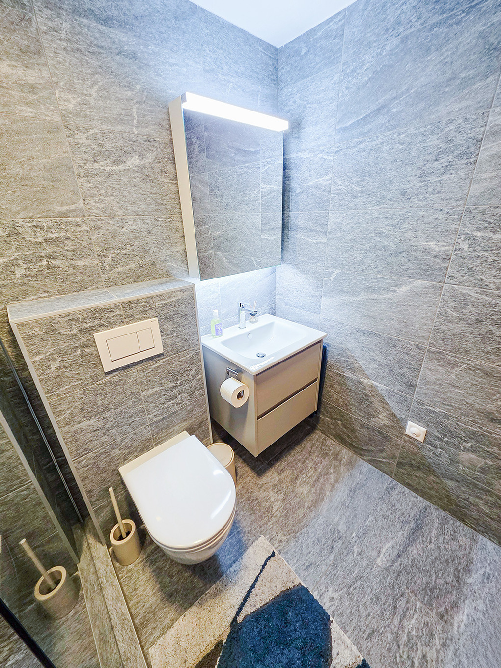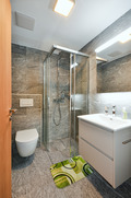 Parterre: Zwei schöne Doppelzimmer, jeweils mit eigenem Bad (Dusche, Wb, WC). Süd-Terrasse.