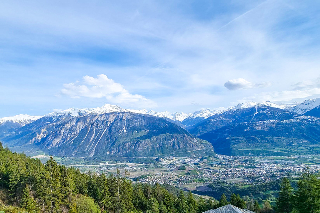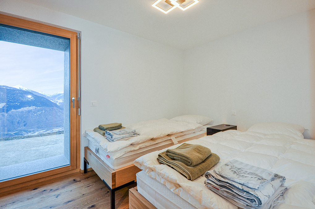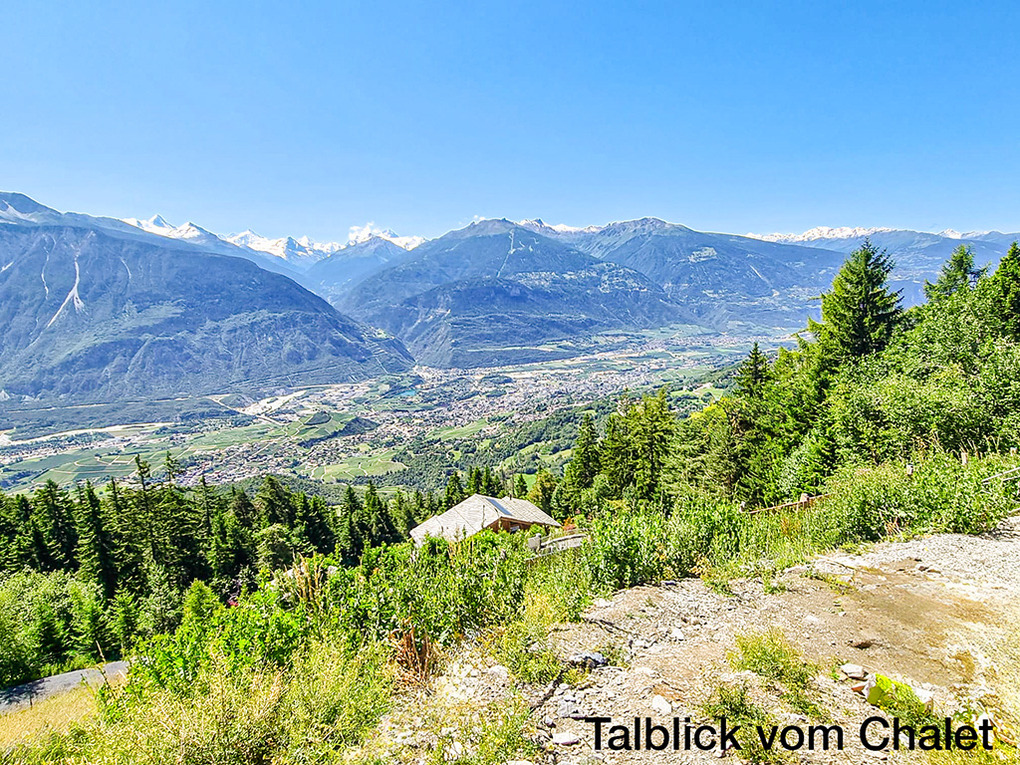 Ort: Aminona. Ruhige Hanglage mit wunderschönem Panoramablick ins Rhônetal und auf die Walliser Alpen. Kleine Chaletsiedlung am Ortsrand mit schönen, individuellen Chalets. Ortsmitte Aminona mit Talabfahrt 900 m. Skibus 800 m. Crans-Montana mit Gondel, Restaurants, vielen Geschäften 3,8 km.