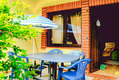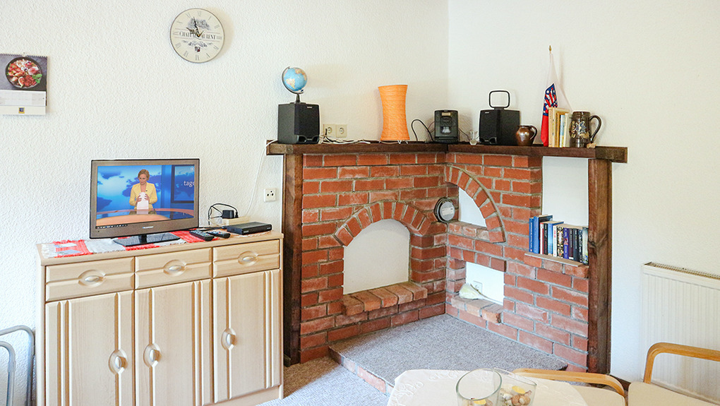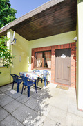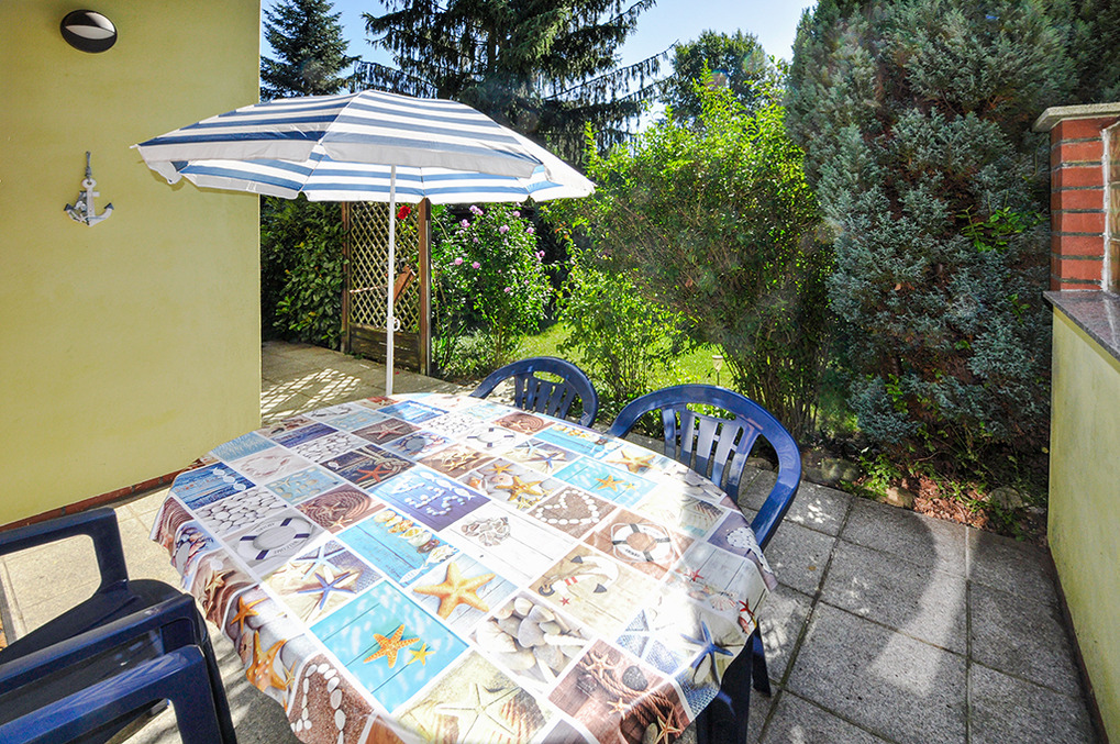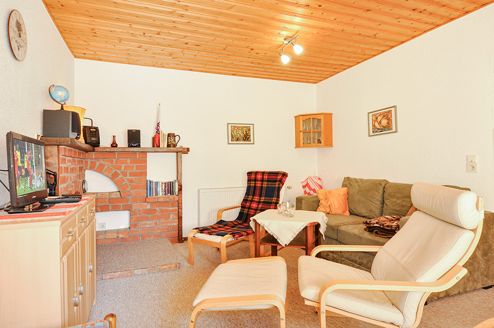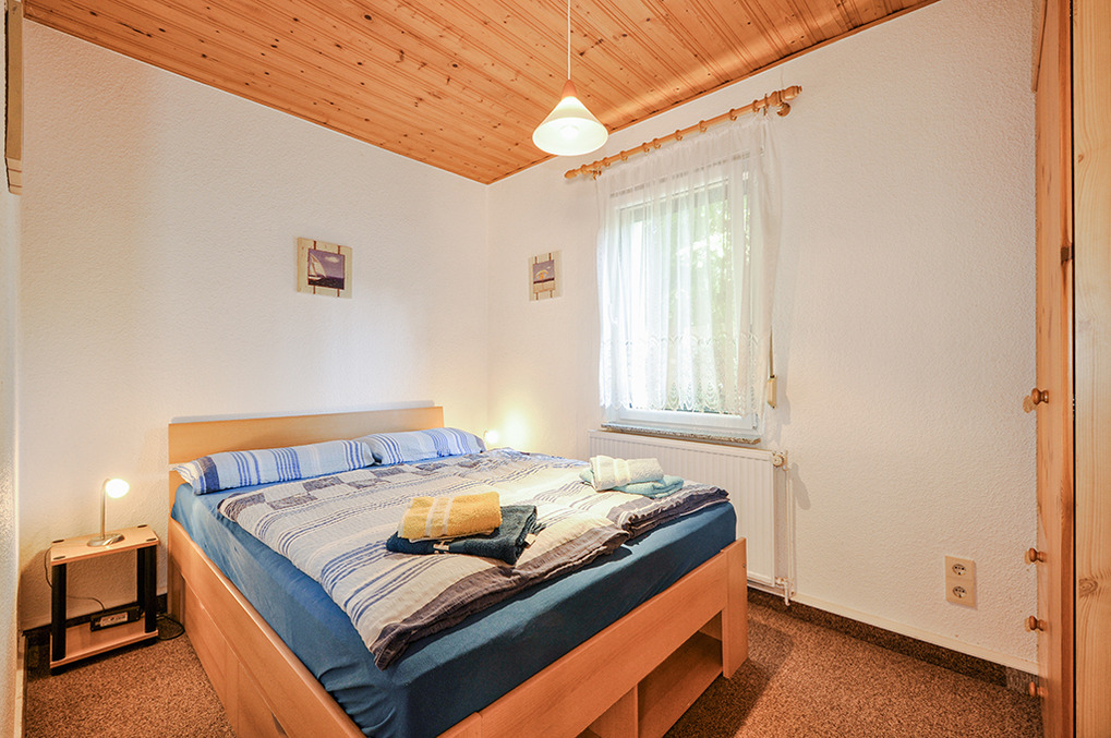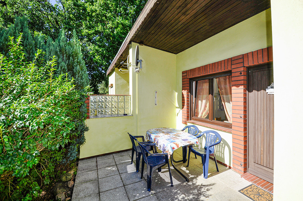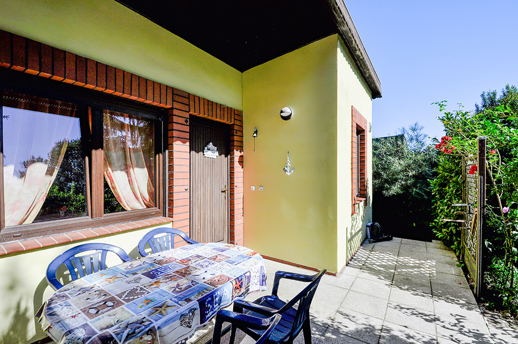 D 47.123 Ferienhaus 1-4 Pers.: 2-Zimmer-Haushälfte mit 35 qm Wohnfläche. Gemütlicher Wohn-/Essraum mit Sitzgruppe (Schlafsofa 2 Pers), Sat-TV, Radio/CD, Esstisch. Kleine Pantry-Küche (Mikrowelle, Grill). Doppelzimmer mit franz. Bett. Bad: Du, Wb, WC. Überdachte Terrasse mit Gartenmöbeln.