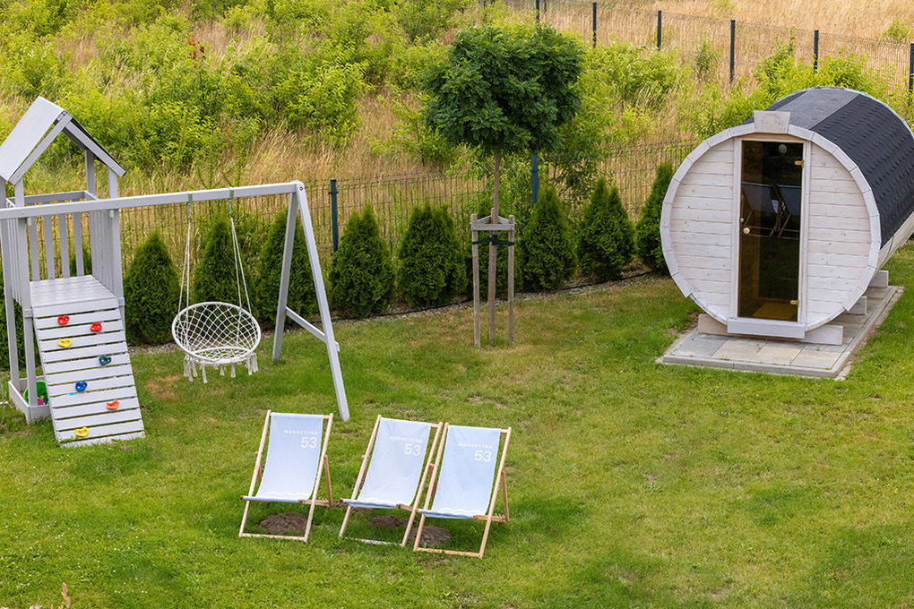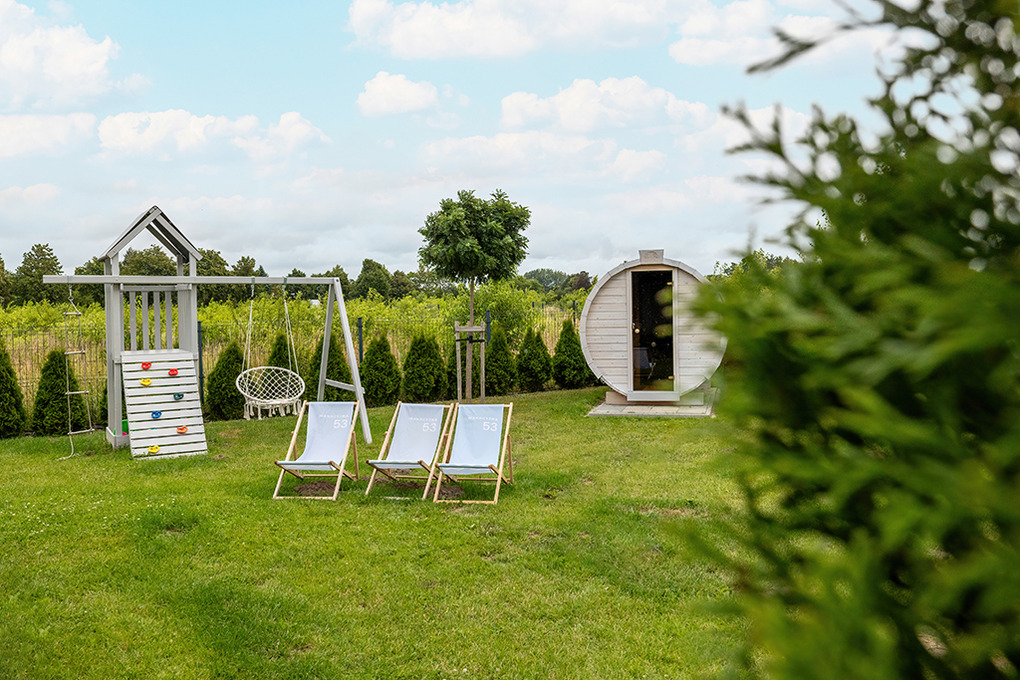 Haus: Neue Residenz mit sehr komfortablen Ferienwohnungen, 2022 neu erbaut auf einem 1900 qm großem Rasengrundstück. Moderne Einrichtung. Kostenloser Internetzugang über WLAN. Warmwasser über Durchlauferhitzer. Zentralheizung, Fußbodenheizung. Im Wohnzimmer und Schlafzimmer Klimaanlage und SMART-TV. Alle Fewos mit Balkon oder Terrasse (nur PL 038.079A) mit Blick auf den davor liegenden, sehr gepflegten Garten. 1 Parkplatz/Fewo. In der Anlage: 3 Wohnungen. Kinderspielplatz mit Sandkasten, Klettergerüst, Rutsche. Lagerfeuerstelle. Pavillon mit überdachten Sitzmöglichkeiten, gemauertem Grill zur gemeinschaftlichen Nutzung. Sauna (Gebühr).