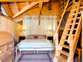 2. Etage (Dachboden): Doppelzimmer mit Bad (Du, Wb, WC). 3-Bettzimmer mit Bad (Bw, Wb, WC). 3-Bettzimmer mit 2 Einzelbetten, Bad (Du, Wb, WC), das 3. Bett auf der Galerie über eine Leiter erreichbar. 4-Bettzimmer mit 2 Einzelbetten, Du, Wb, die 2 weitere Betten auf der Galerie über eine Leiter erreichbar. Separates WC.