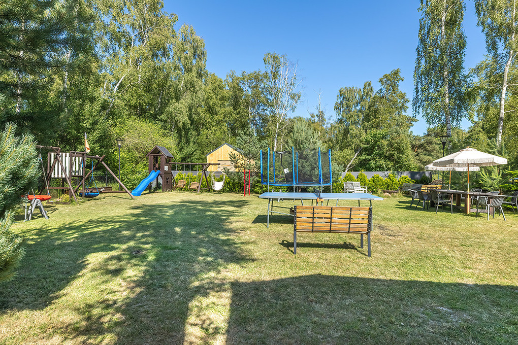 Haus: Kleine Ferienhausanlage mit neun Ferienhäusern. Nichtraucherhäuser. Freundliche Einrichtung. Warmwasser über E-Boiler (50 l). Terrasse mit Sitzmöbeln. In der Anlage: großer Spielplatz mit Trampolin, Kinderspielhaus mit Rutsche, Schaukeln, Tischtennis zur gemeinschaftlichen Nutzung. 1 Pkw-Stellplatz/Haus auf dem umzäunten Grundstück.
