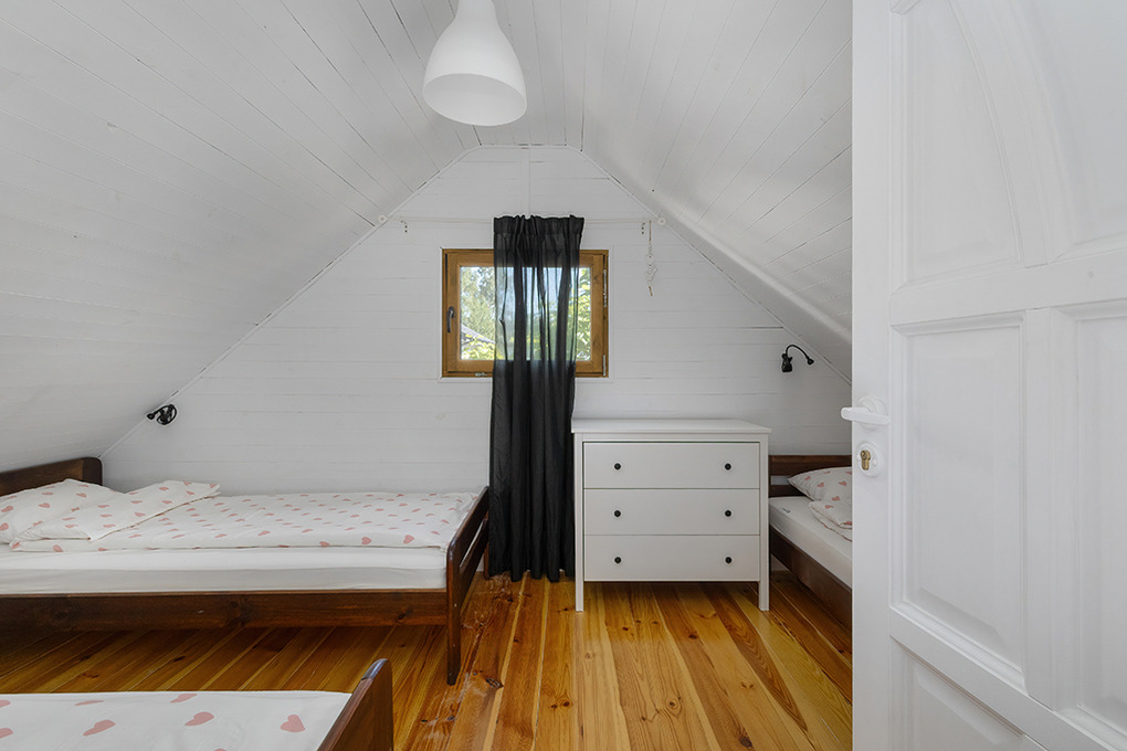 PL 61.10 Ferienhaus 1-5 Pers.: 3-Zimmerhaus mit ca. 50 qm Wohnfläche über 2 Etagen. Parterre: Wohn-/Essraum mit Sofa , Flachbild-TV, Esstisch, Küchenzeile (2 Induktionsplatten, Kühlschrank). Bad/WC. 1. Etage: 2- Bettzimmer. 3- Bettzimmer. Terrasse mit Sitzmöbeln.