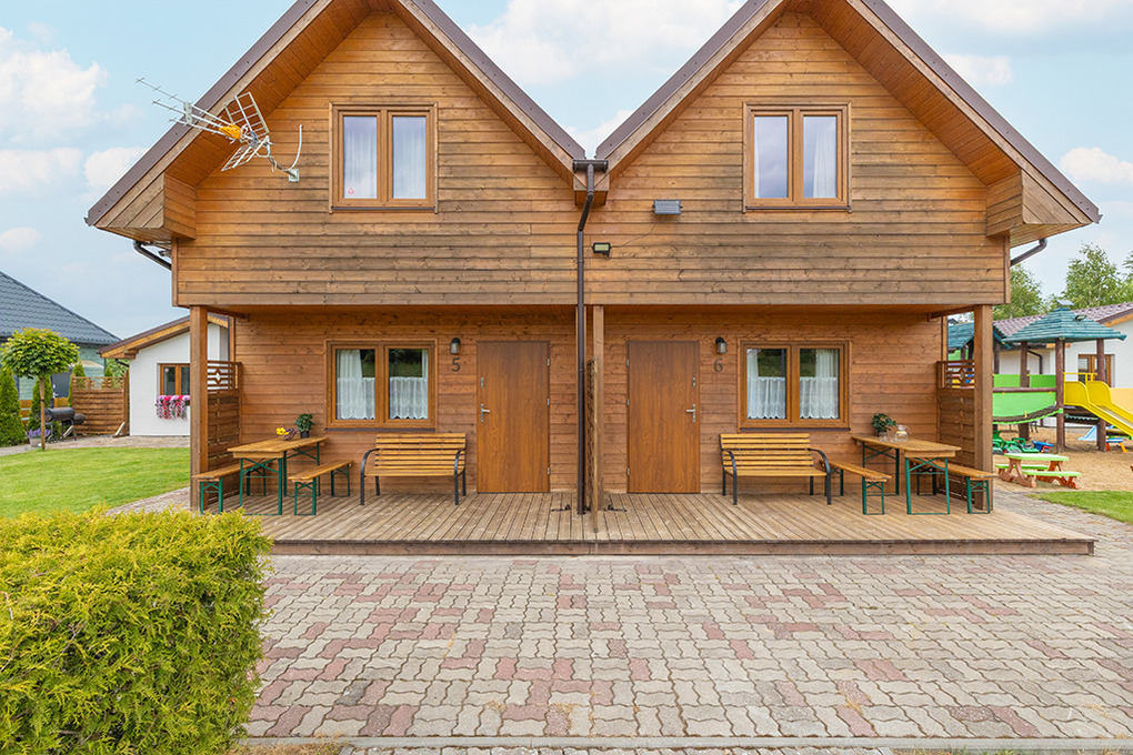 Haus: Kleine Ferienhaussiedlung mit insgesamt 8 Doppelhaushälften und 1 kleinen Ferienhaus für 4 Personen (PL 056.005) auf einem sehr gepflegtem, eingezäunten Grundstück. In der Anlage: Rezeption. Fahrradverleih (im Mietpreis inkl. n.V.). Grills zur gemeinschaftlichen Nutzung. Überdachte Lagerfeuerstelle mit Sitzmöglichkeiten. Großer Kinderspielplatz mit Schaukeln, Rutschen, Wippen, Klettergerüst, Sandkasten, Kickertisch, Tischtennisplatte, Fußballplatz, Volleyballfeld.
