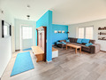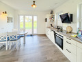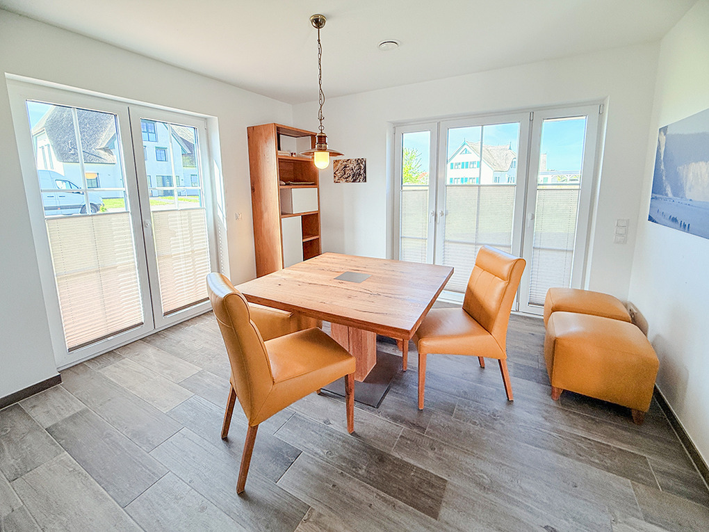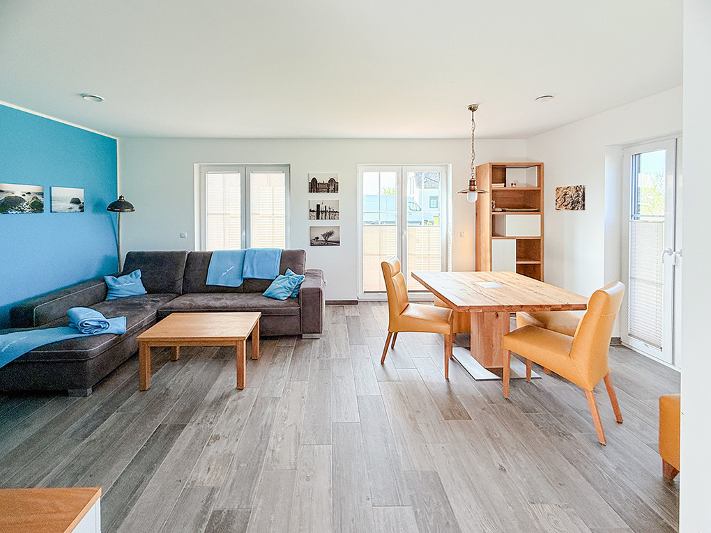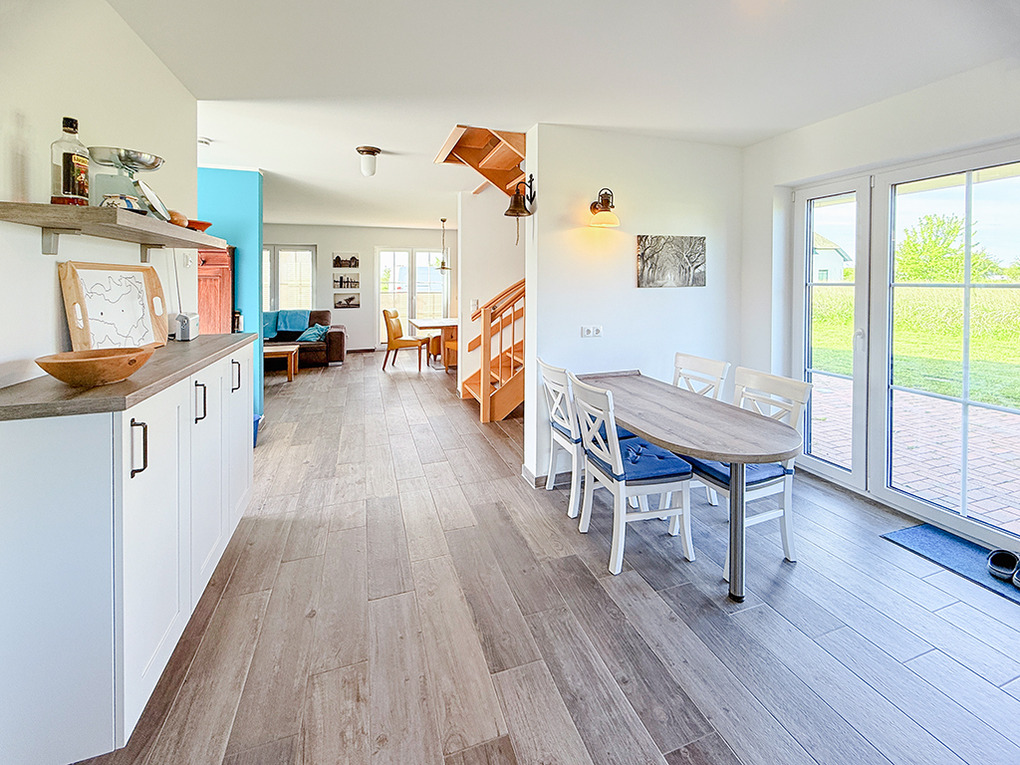 D 128.30 Ferienhaus 1-5 Pers.:4-Zimmerhaus mit 107 qm Wohnfläche. Parterre: Großzügiger Wohn-/Essraum mit Couchgarnitur, Sat-TV, Esstisch, sehr gut ausgestattete Küche mit Spülmaschine, Backofen, Mikrowelle, weiterer Esstisch. Separates WC. Abstellraum mit Waschmaschine, Trockner. 1. Etage: 2 Doppelzimmer, davon eins mit Sat-TV. Einzelzimmer mit Sat-TV. Bad: Du, Bw, Wb, WC.