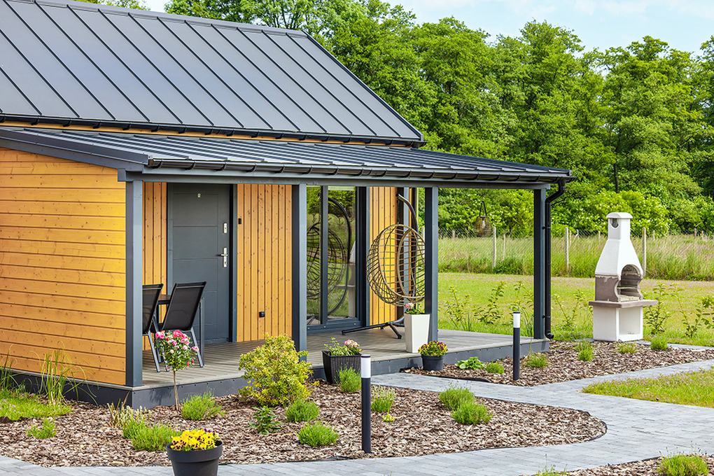 Haus: Gepflegte Ferienhaus-Anlage mit Pool und Rezeption, in 2025 neu erbaut. Holzferienhäuser mit moderner Einrichtung. Kostenloses Internet über WiFi. Heizung über Klima-Anlage und E-Radiator. Warmwasser über E- Boiler (60 l). Terrasse mit Sitzmöbeln, Grill. 1 Pkw-Stellplatz/Haus.
