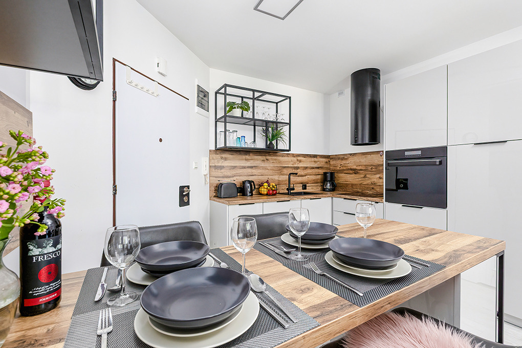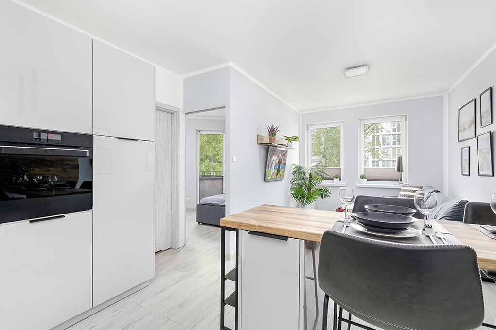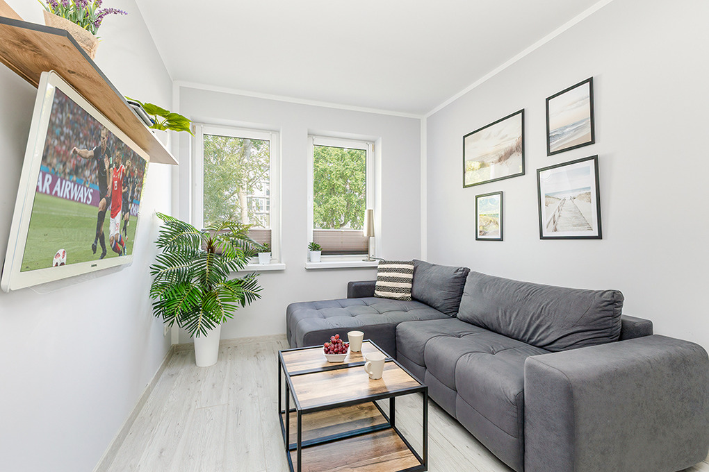 PL 10.22 Wohnung 2-4 Pers.: Gemütliche 2-Zimmerwohnung mit 42 qm Wohnfläche, 1. Etage. Lichtdurchfluteter Wohn-/Essraum mit Sitzgarnitur (Schlafsofa 2 Pers.), Esstisch, moderner Küchenzeile (4 E-Platten Induktionsfeld, Backofen, Mikrowelle, Dunstabzug, Gefrierfach 15 l. Spülmaschine). Flachbild Sat-TV (SMART) mit dt Programmen. Klimaanlage. Doppelzimmer mit Klimaanlage. Bad: ebenerdige Dusche, Wb, WC, Waschmaschine. Balkon mit Sitzmöbeln.