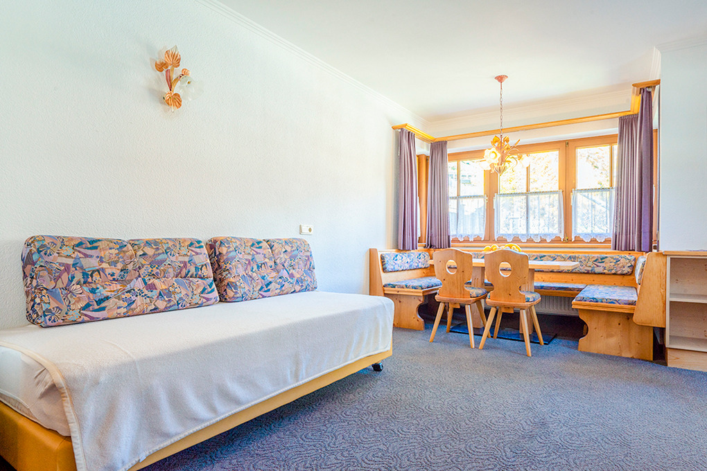 Ort: Sölden. Ruhige, dennoch zentrale Lage im Ort. Geschäfte, Restaurants 200 m. Gondel ins Wandergebiet Gaislachkogel 400 m.