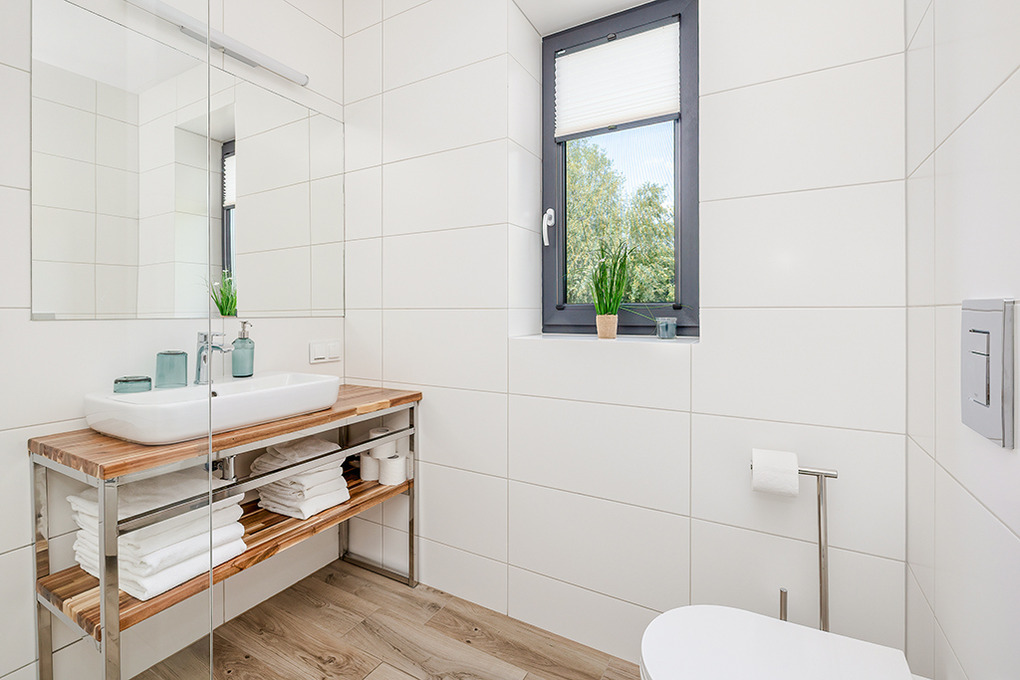 PL 20.60 Ferienhaus 1-6 Pers.: Helles 3-Zimmerhaus mit ca. 67 qm Wohnfläche über 2 Etagen. Parterre: Wohn-/Essraum mit Sofa (Ausziehcouch 2 Pers.), Flachbild SMART-TV mit deutschen Programmen (Sat-TV), großem Esstisch, gut ausgestatteter Küchenzeile (Induktionsherd 2-Platten, Abzugshaube, Mikrowelle, Spülmaschine). Modernes Bad mit ebenerdiger Dusche, Wb, WC. Von Wohnzimmer Treppe in die 1. Etage: Doppelzimmer, Zweibettzimmer. Terrasse mit Sitzmöbeln, Grill, Blick auf den davorliegenden Garten.