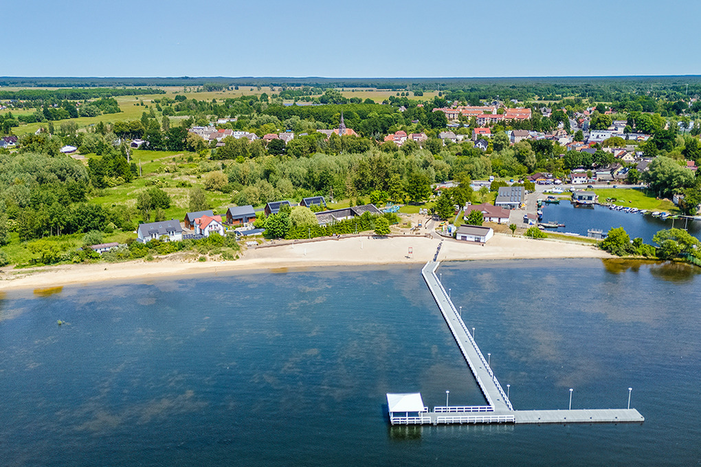 45 km von Misdroy entfernt. Idyllische, ruhige Lage nur 130 m zum feinsandigen, bewachten Badestrand am Stettiner Haff mit weitläufig flachem Wasser, ideal für Familien mit Kindern. Großer öffentlicher Spielplatz mit Klettergerüsten, Wippen, Schaukeln, Seilbahn, Beachvolleyball-Feld 130 m. Streetfood-Truck 130 m (Mai – Sept). Verleih von Strandkörben, SUP, Kajaks, Tret-, Ruderbooten 150 m. Lange Seebrücke mit überdachten Sitzmöglichkeiten im Pavillon 150 m. Restaurant 200 m, Supermarkt 500 m. Aussichtspunkt für Naturliebhaber und (Hobby-) Ornithologen 250 m. Yachthafen mit Charterbooten, Bootsausflügen zu den Brutplätzen der Seeadler, weiterer Natur-& Wildtiertouren 300 m. Marina mit Fischereihafen, Promenade 400 m. Seehafen 600 m. Stepnica mit Cafes, Fachwerkkirche St Hyazinth 600 m. Zum Restaurant umgebaute alte Fachwerkhalle 300 m.
