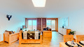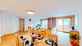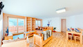 CH 385.45 Wohnung 10-18 Pers.: 6 Zimmer, 195 qm über zwei Etagen. Großer Wohnraum mit Sitzgruppe (Schlafsofa 2 Pers.), TV, Esstisch, Küchenzeile. Galerie, offen zum Wohnraum mit weiterer Sitzecke (Schlafsofa 2 Pers.), 2 Etagenbetten. Vier Doppelzimmer. Kleines 2-Bettzimmer mit Etagenbett (ohne Fenster). Drei Bäder: je Du oder Bw, Wb, WC.